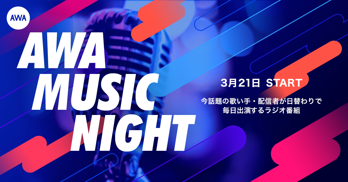 「AWA Music Night」は、AWAが昨年リリースした音声配信機能と応援メッセージ機能の一般解放を前に開催されるもので、3月21日~4月17日の間に、さまざまなサービスで人気の歌い手7名が、毎日日替わりで、音声配信機能と応援メッセージ機能を使用して、ラジオ配信ラウンジを開催いたします。また、配信者7名の中で期間中に、リスナー数×応援メッセージの金額が1位だった配信者に、インターネットTV「ABEMA」で放映される音声配信スタートを記念したAWAのCM出演権をプレゼント。さらに、1位の配信者を応援したリスナーの中から抽選で、20名様にギフトカード※1,000円分をプレゼントいたします。ぜひ、推しの配信者をSNSなどでシェアして応援してください。