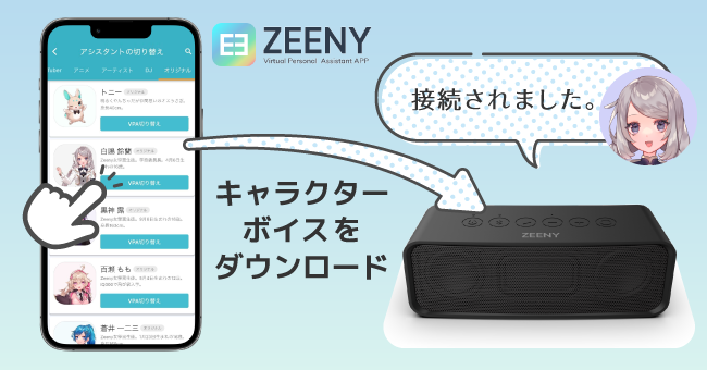 Zeeny T✩Boxの操作音は、Zeeny アシスタントで購入したVPA(バーチャルパーソナルアシスタント)の音声に手軽に変更できます。