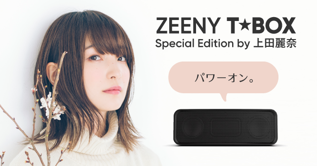 Zeeny シリーズの Special Edition はボイスストアで配信していない特別な操作音をプリインストールした特別な限定バージョンです。今回のZeeny T✩BoxのSpecial Editionは、上田麗奈ボイスを搭載し、「パワーオン」、「接続しました」などの操作音を楽しむことができます。