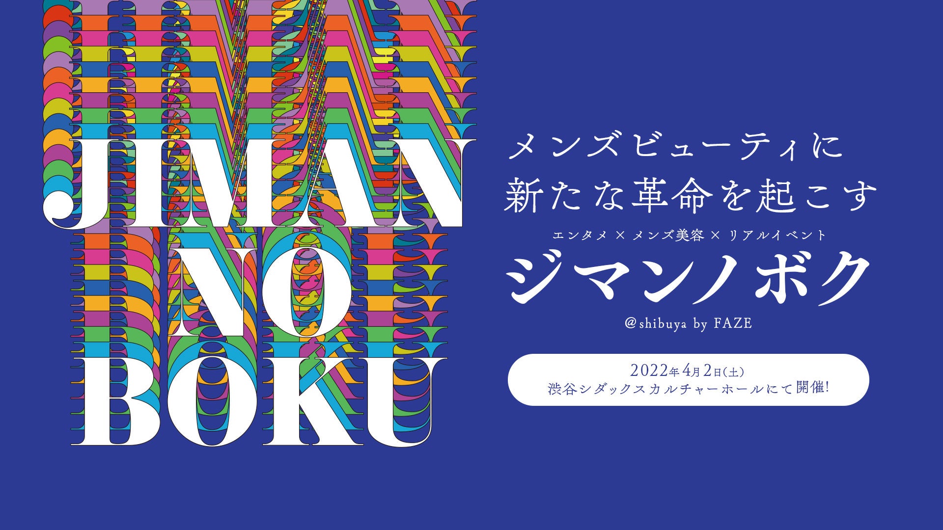 2022年4月2日(土)に開催されるリアルイベント「jiman_no_boku ジマンノボク@shibuya by FAZE」は、国内においても近年少しづつ認知されるメンズビューティというジャンルにエンターテインメント性を持たせたパイオニアを目指すべく、エンターテイメント性を持ったイベントとして発信することを目的としています。