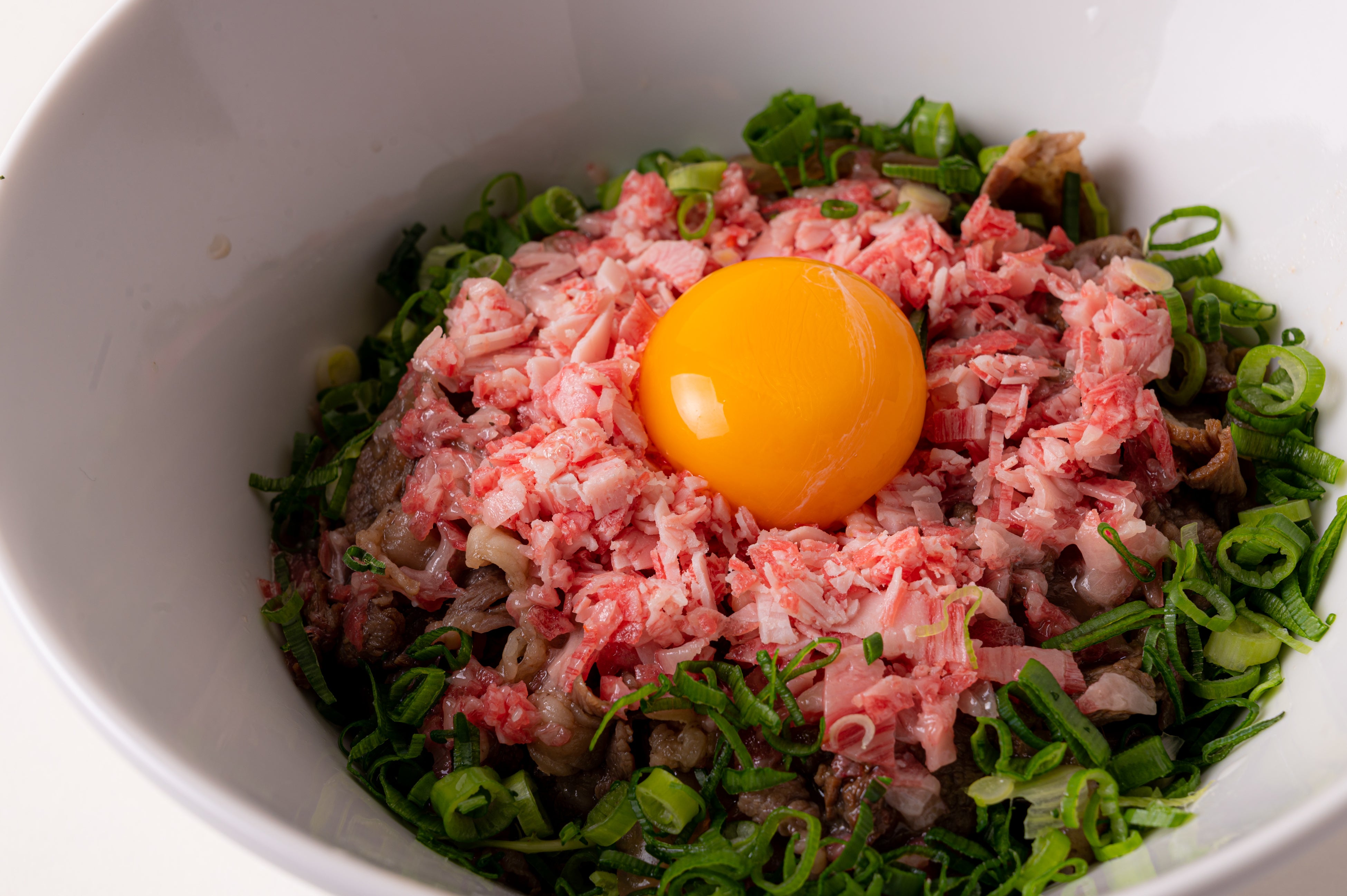 和牛を使った牛丼の上に、黒毛和牛のトロをたっぷりとトッピングした牛肉の旨味が詰まった一杯