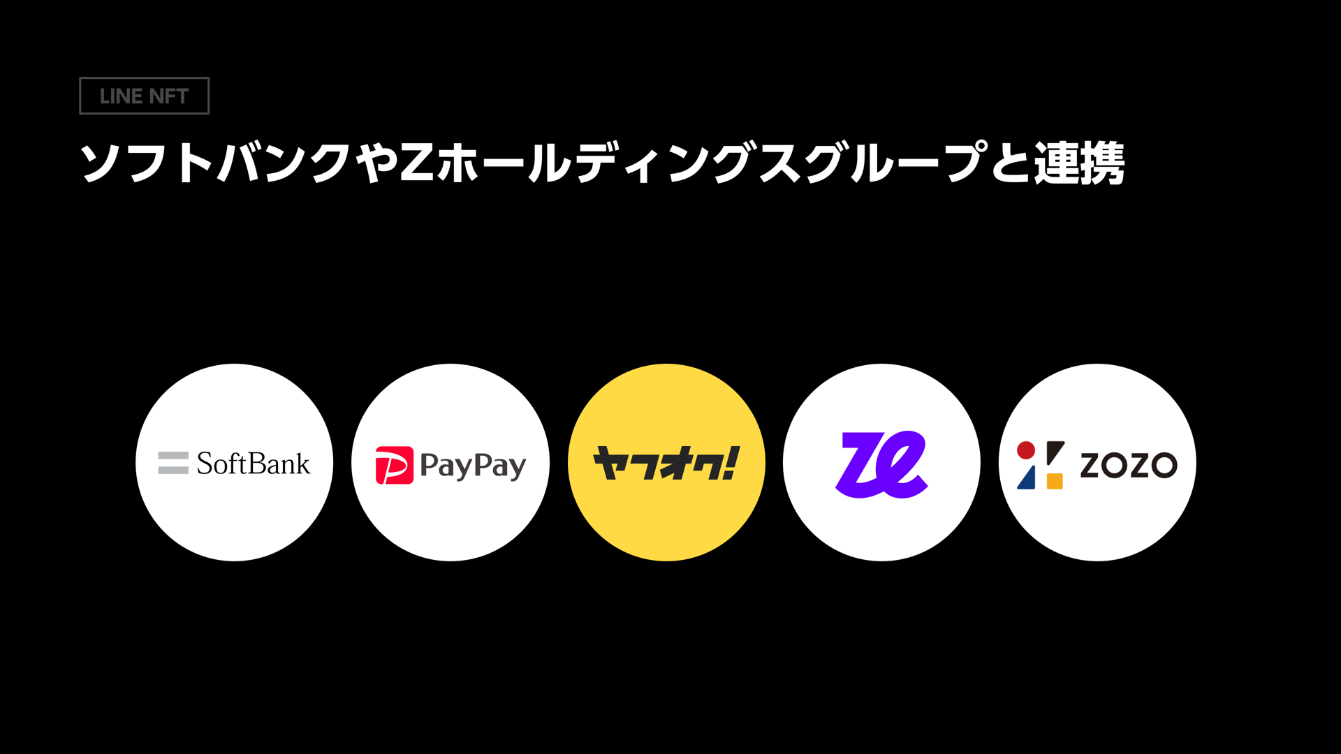 具体的にソフトバンク株式会社とは、同社が提供するB.LEAGUE を中心とした動画配信サービス「バスケットLIVE」において動画NFTの取り扱いを予定しております。また、同社のコンテンツ配信サービス「5G LAB」とも技術的な連携を進め、xR技術を活用した立体感・臨場感のあるNFTの検討を進めています。またPayPay株式会社とは、NFT購入時の決済手段として「PayPay」の導入を検討しております。また、昨年発表した、ヤフー株式会社が運営する日本最大級のネットオークションサービス「ヤフオク!」との連携も進めており、NFTを「ヤフオク!」でかんたんに出品・落札できるように準備を進めております。株式会社ZOZOとは、一部のファッションブランドとのNFT販売を予定しており、ファッション領域におけるNFTの協業を検討しております。さらに「LINE GAME」や「LINE MUSIC」、「GYAO!」などのZホールディングスグループのエンターテインメントサービスを運営する「Z Entertainment」と連携し、動画やライブ配信などのエンターテインメント領域におけるNFT事業の推進を図ってまいります。このようにNFTをより多くの方が気軽に売買でき楽しめるNFTマーケットプレイスを提供してまいります。