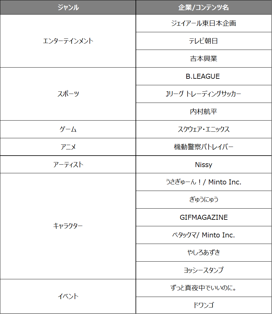 4月13日のサービス開始以降、計17コンテンツと連携し、エンターテインメントやスポーツ、ゲーム、アーティスト、アニメ、キャラクター、イベントの7ジャンルで100種類以上の NFTを順次販売していきます。