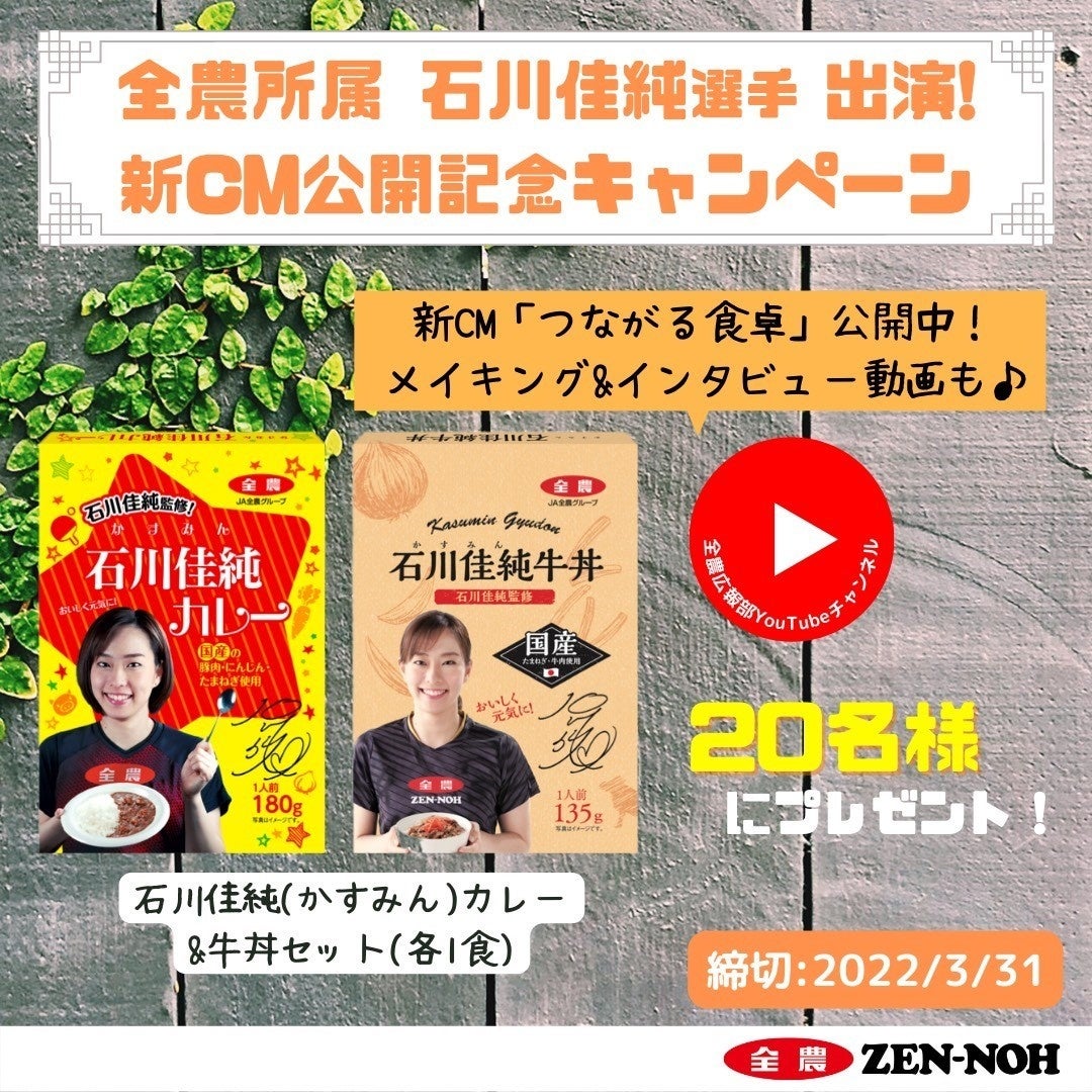 ・賞 品:「石川佳純(かすみん)カレー」・「石川佳純(かすみん)牛丼」セットを10名