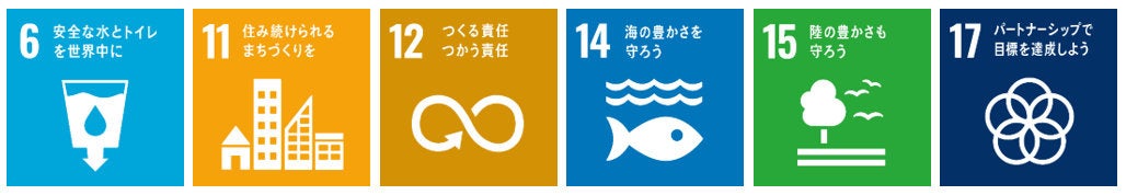 ・“街と企業と市民が一体となった環境活動”として、SDGsの6つのゴールに対応。
