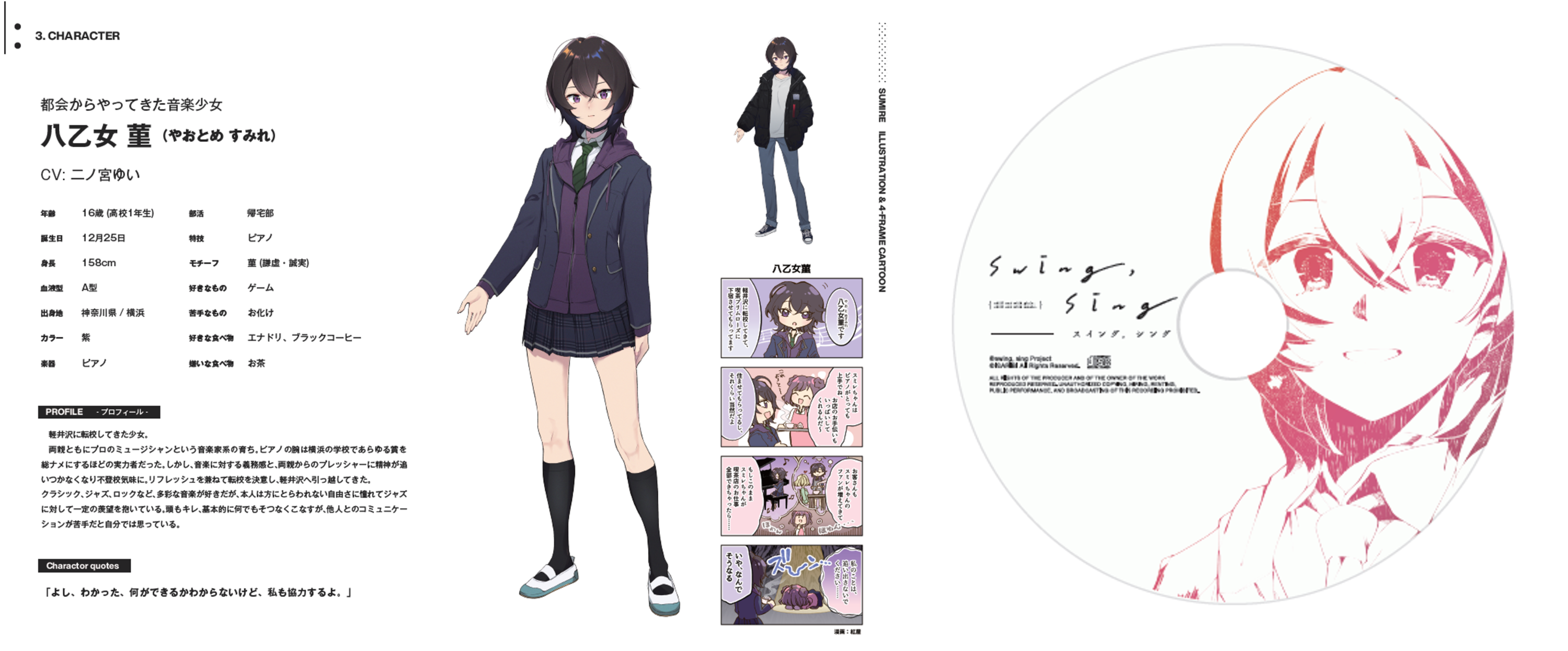 「swing,sing」、これからどんな楽曲、物語に出会えるのかとても楽しみです♪私が演じる病弱ツンデレお嬢様、天羽友梨ちゃんもよろしくお願い致します!!