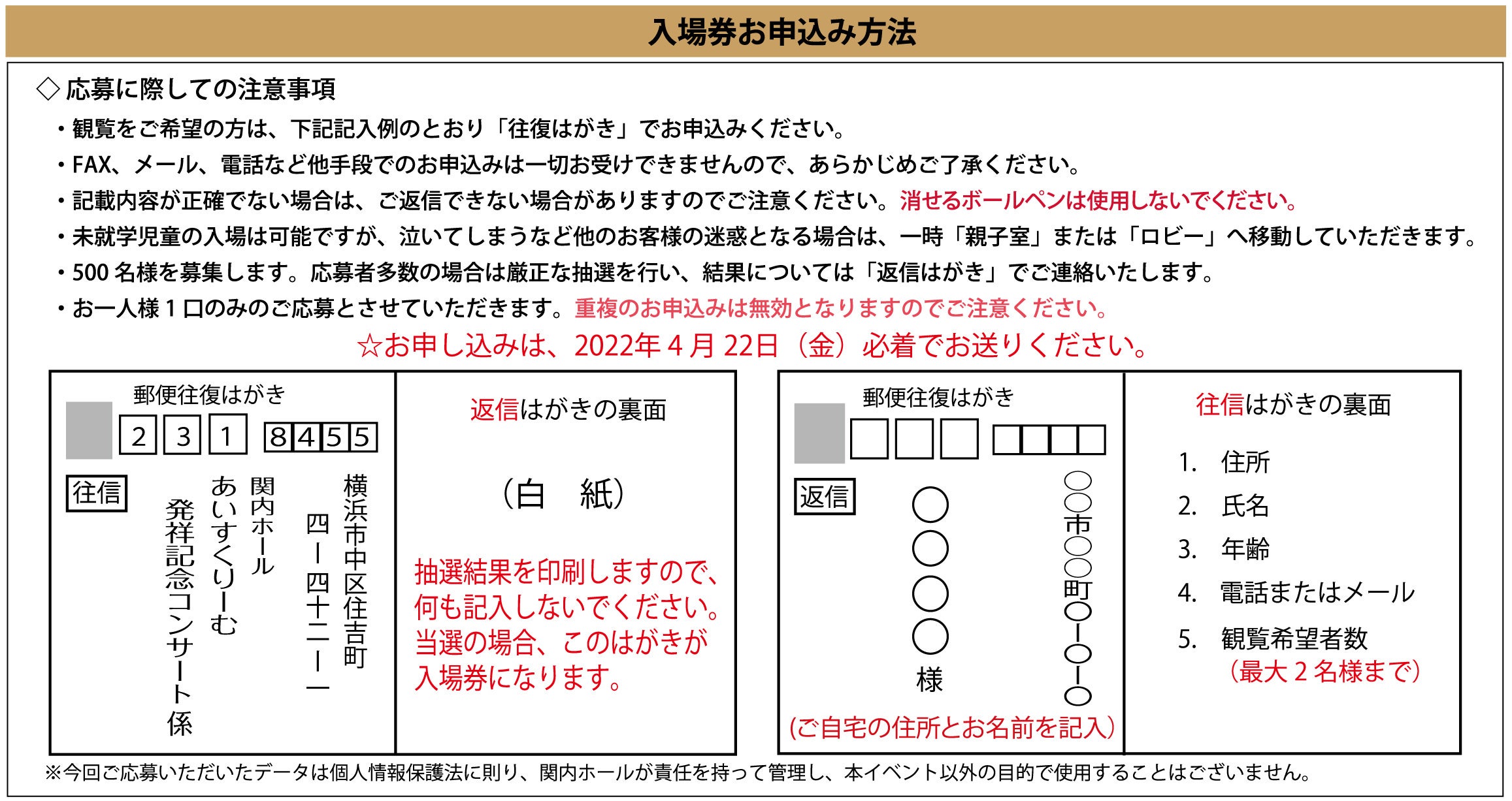 公演を地域の皆様に気軽に楽しんでいただくため、500名様を無料ご招待(事前申込制)いたします。https://www.kannaihall.jp/detals/001816.php