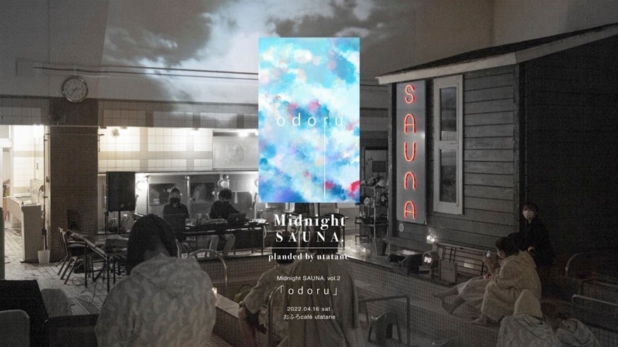 株式会社温泉道場(埼玉県比企郡ときがわ町、代表取締役 山崎寿樹)が運営する温浴施設・おふろcafe utatane(埼玉県さいたま市)では、2022年4月16日(土)にサウナと浴室内での音楽ライブを掛け合わせたイベント「Midnight SAUNA.(ミッドナイトサウナ)」を開催いたします。