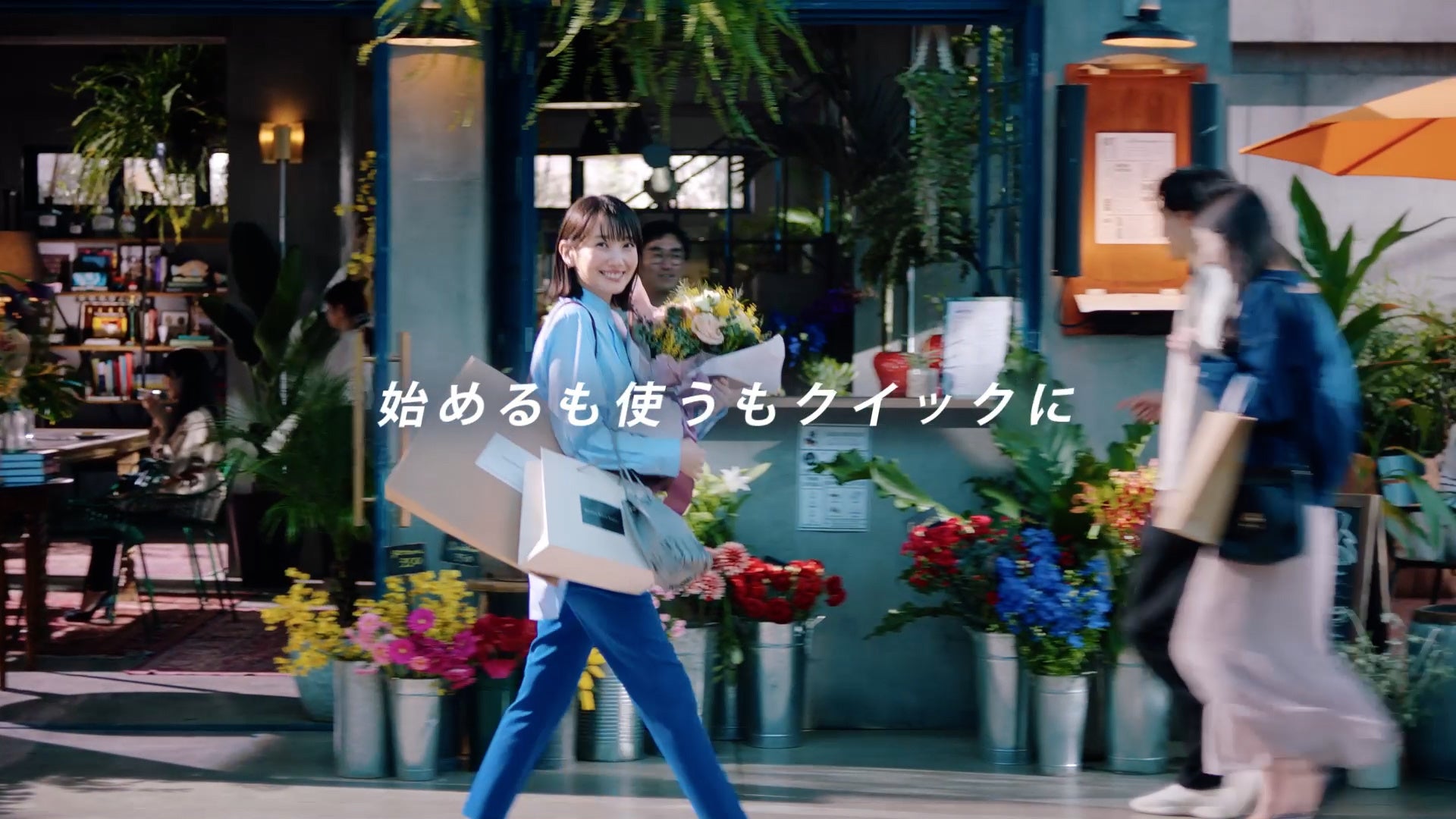 フラワーショップを出ると、花束を手にさっそうと歩きだします。自分らしい暮らしを楽しむ波瑠さんの晴れやかな表情に注目です。