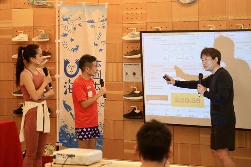 海の落語プロジェクトから、落語家・立川志獅丸と環境研究者・井手迫義和が参加。ゲストに芸人でランナーならぬ“ランニャー”の猫ひろしさんを招いて、福内櫻子さんとサクラダッシャーズの皆さんとランニングを楽しみ、その後は立川志獅丸による海落語の披露、4人による気候変動や海の温暖化についてのトークセッションを行いました。