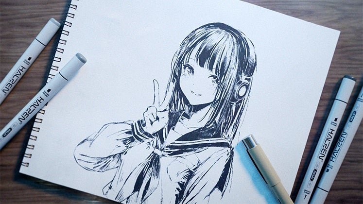 スケッチブックに描き込まれた繊細なイラストに目が惹かれますが、実はこの作品、ペンやスケッチブックなど実写に見えるもの「すべて」が3DCGで制作されています。