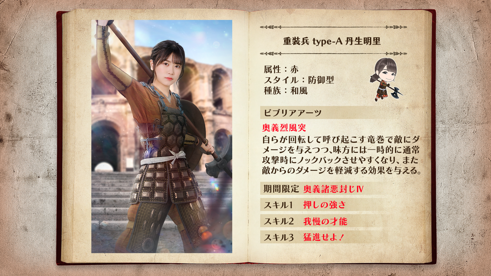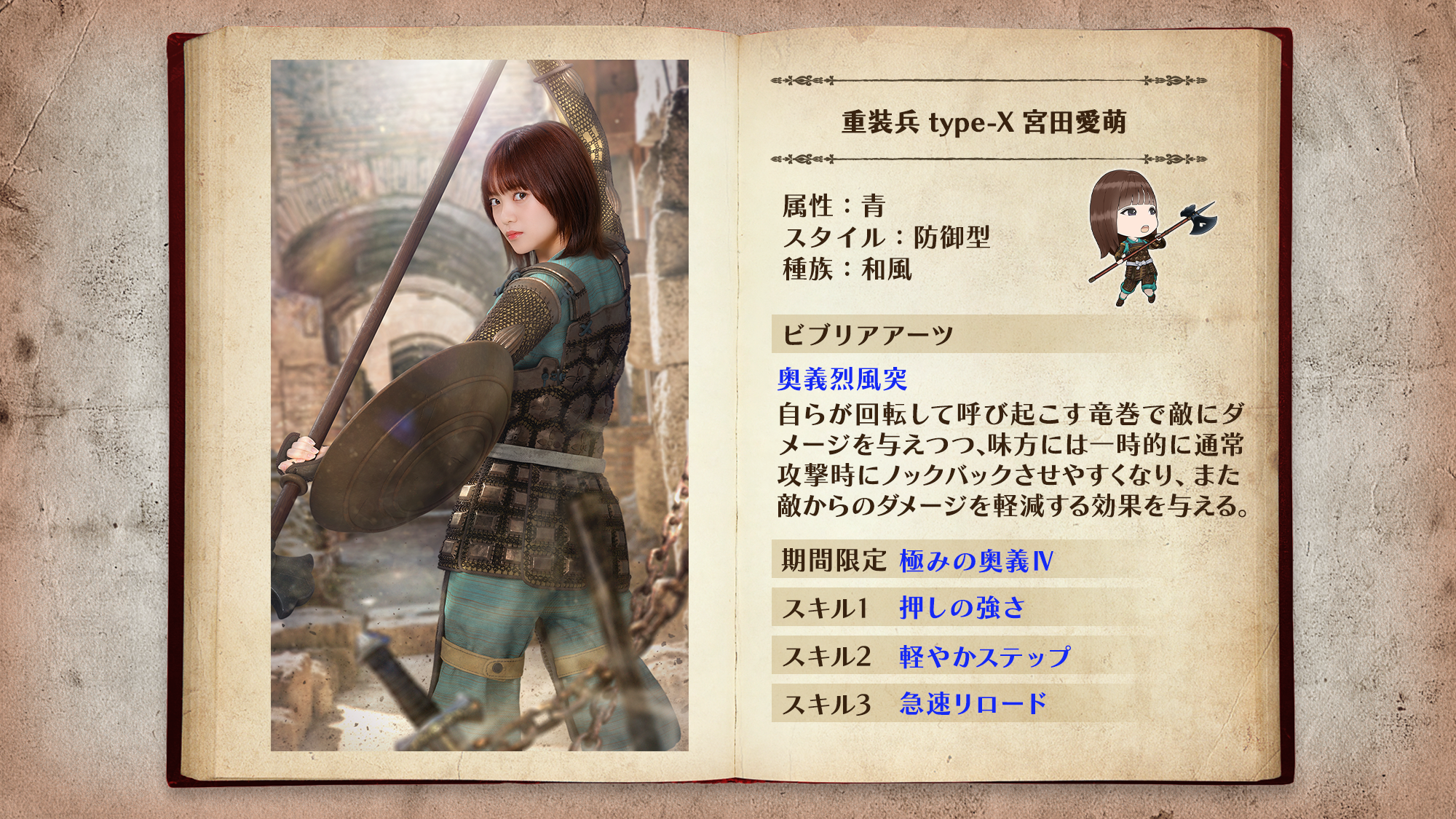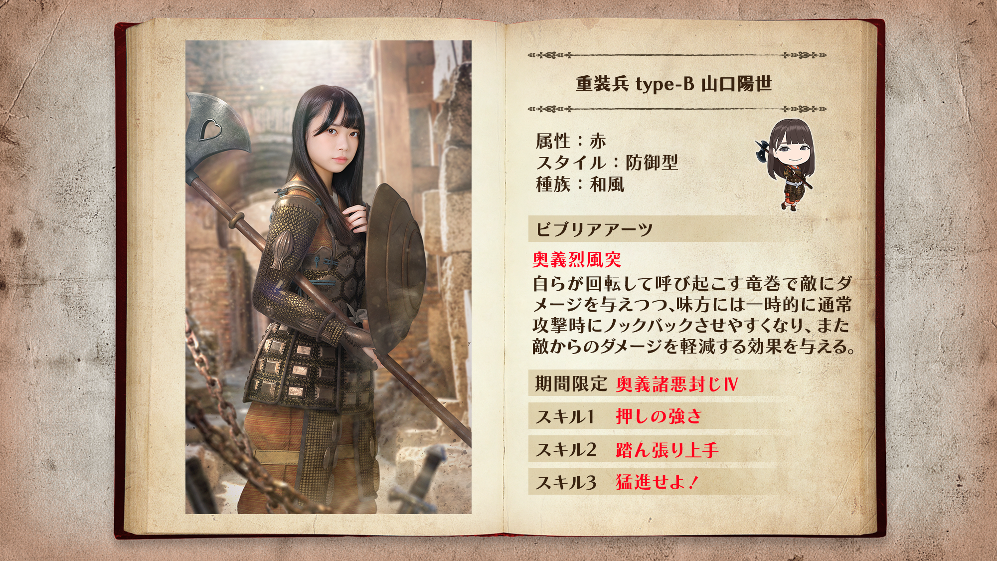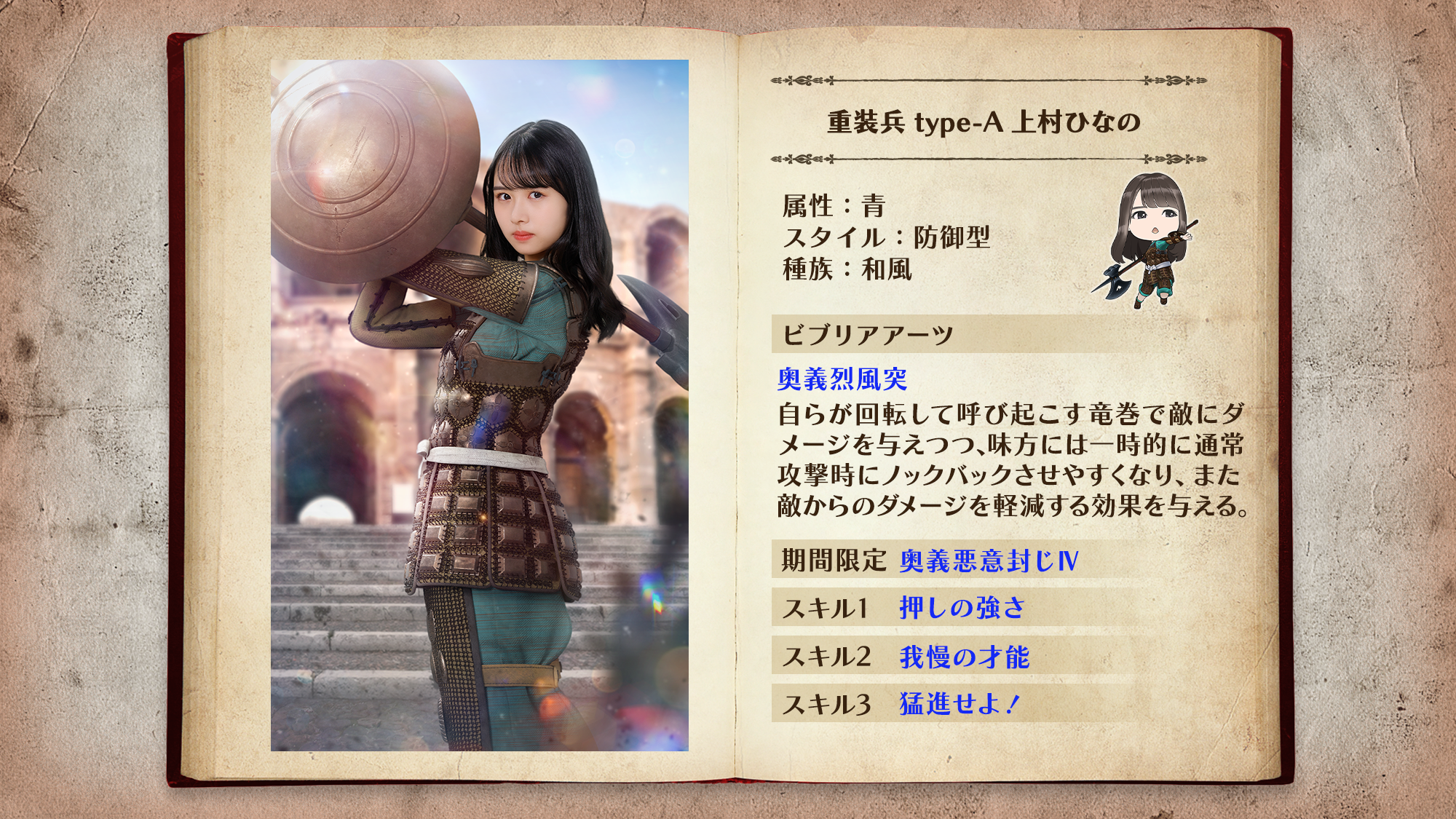「重装兵」は最前線で敵の攻撃を防ぐ防御型ユニット。ビブリアアーツで敵をノックバックさせ、敵を近づけさせません!