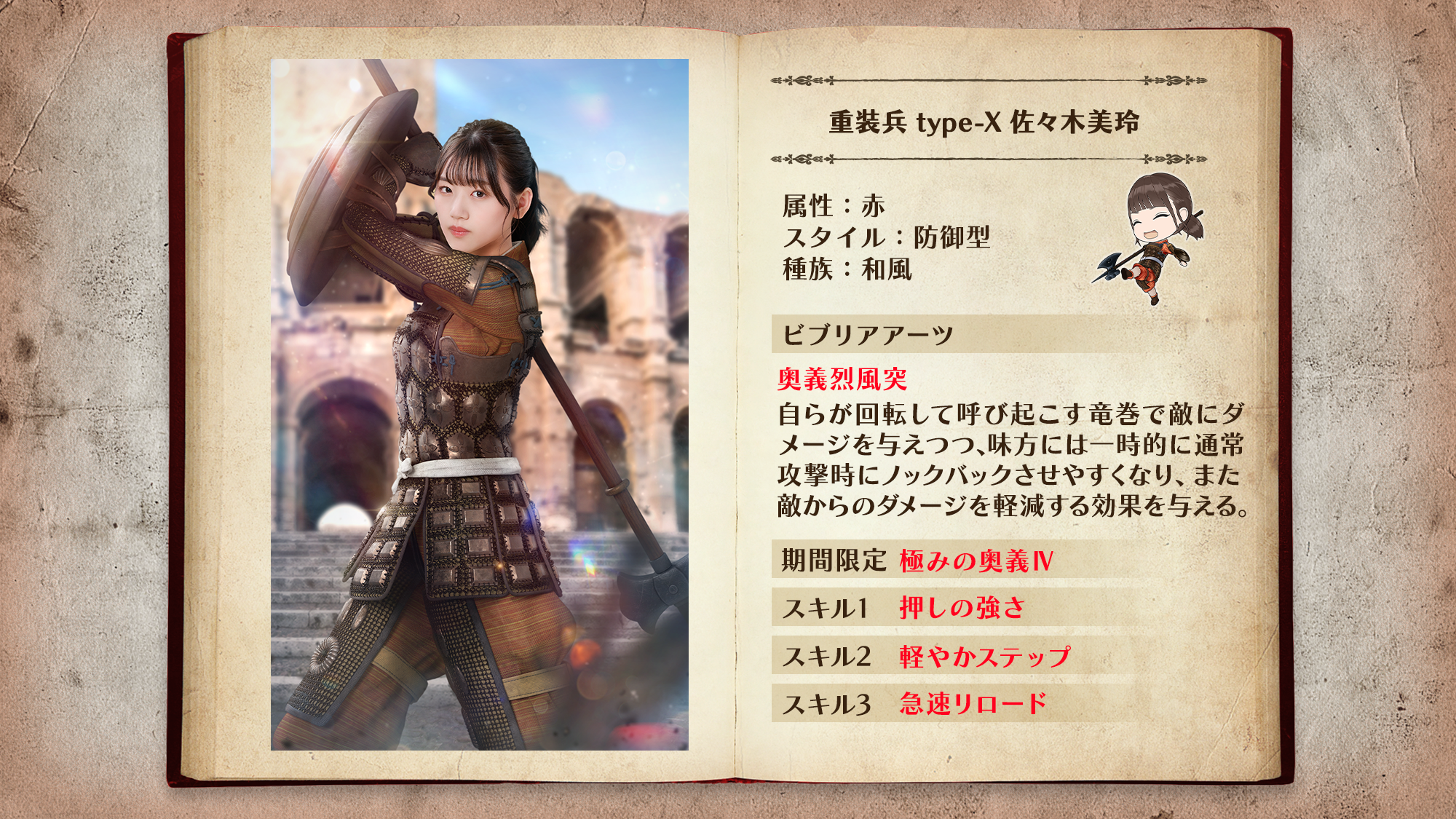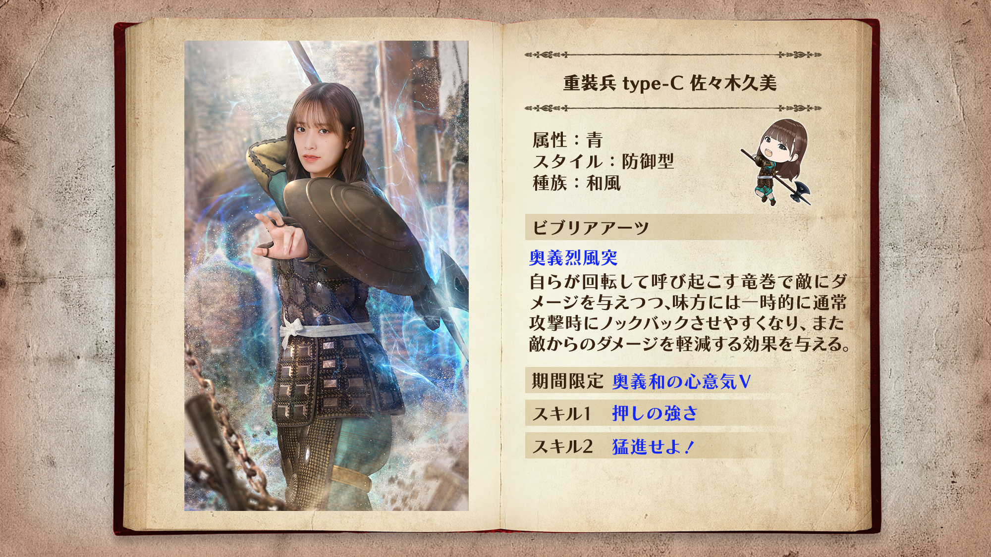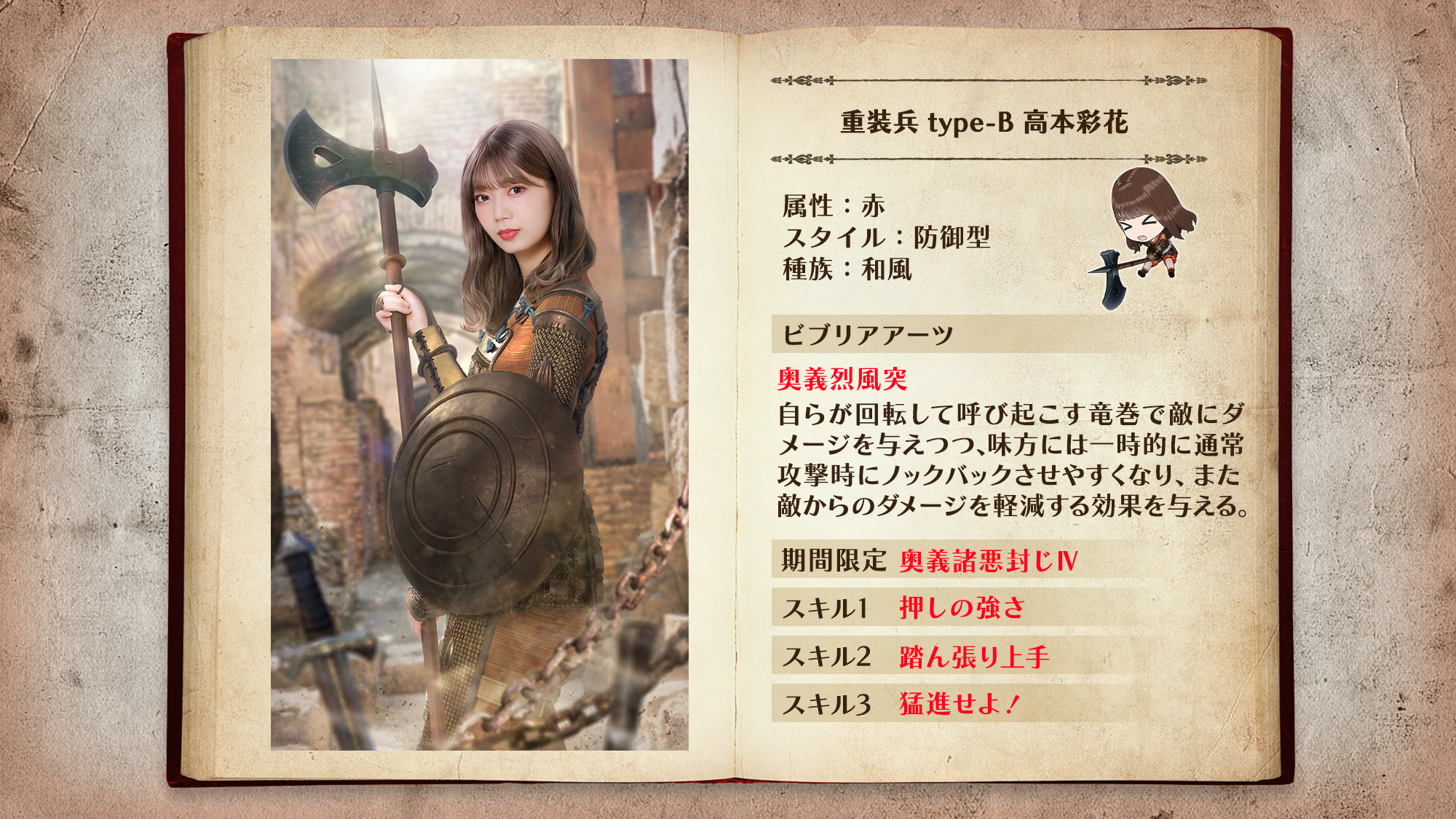「重装兵」は最前線で敵の攻撃を防ぐ防御型ユニット。ビブリアアーツで敵をノックバックさせ、敵を近づけさせません!