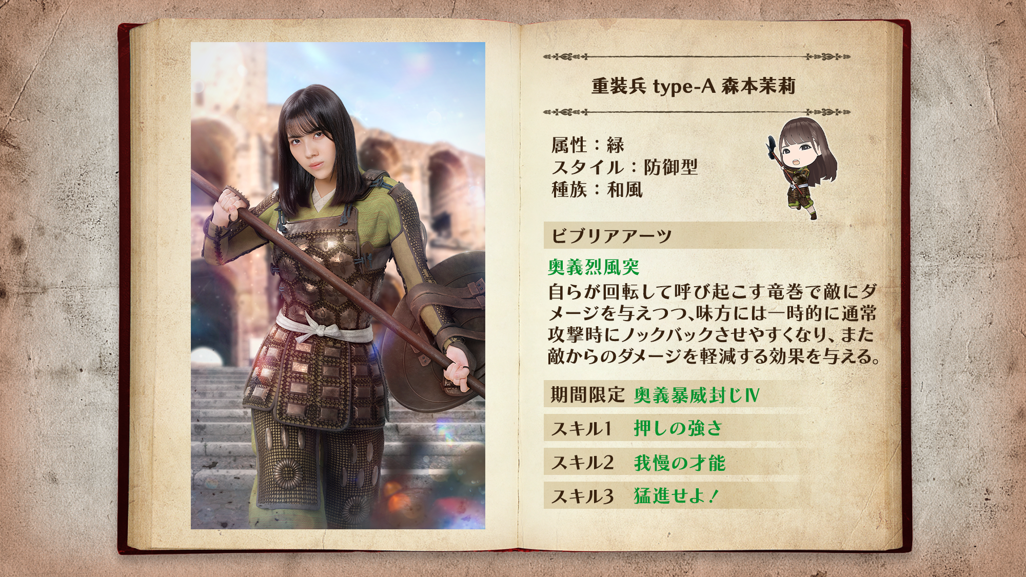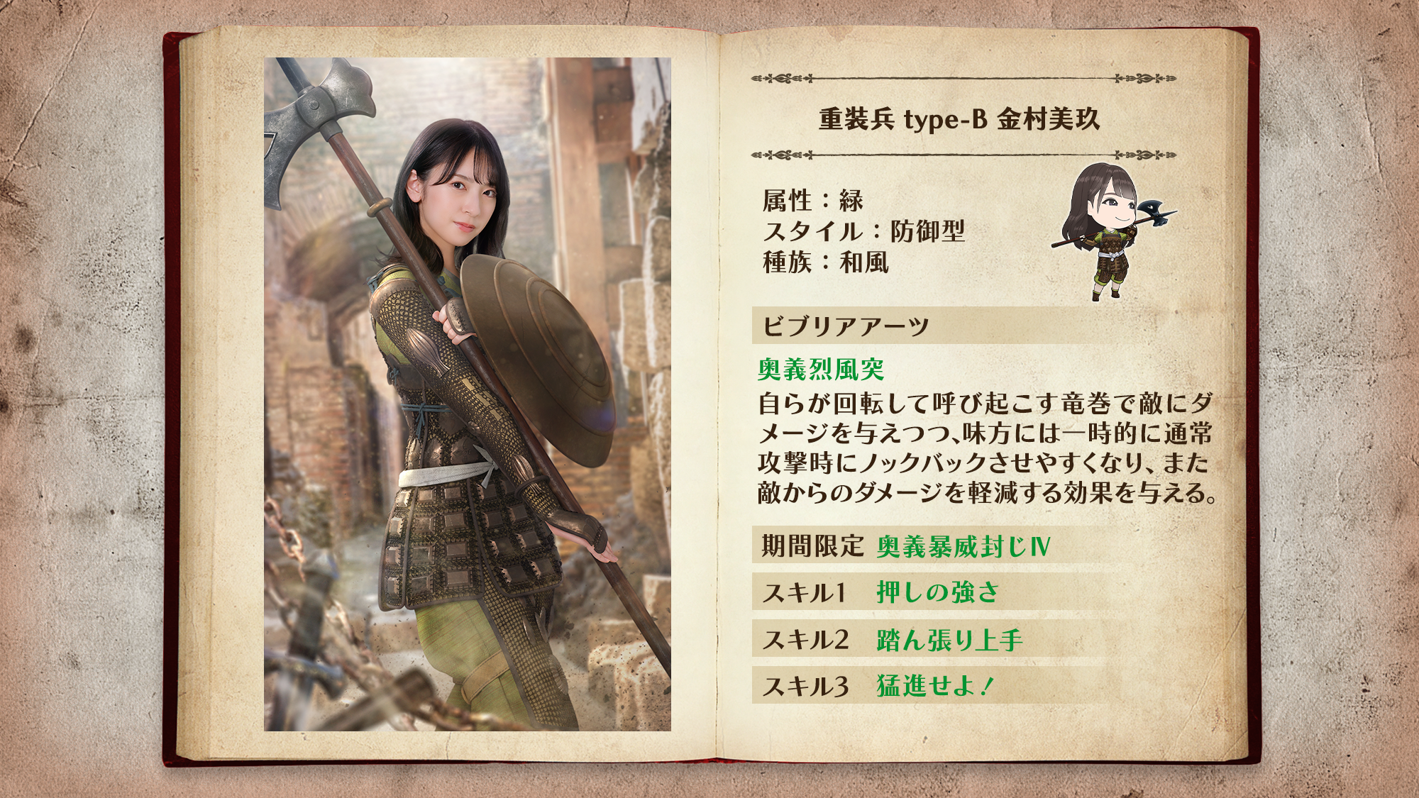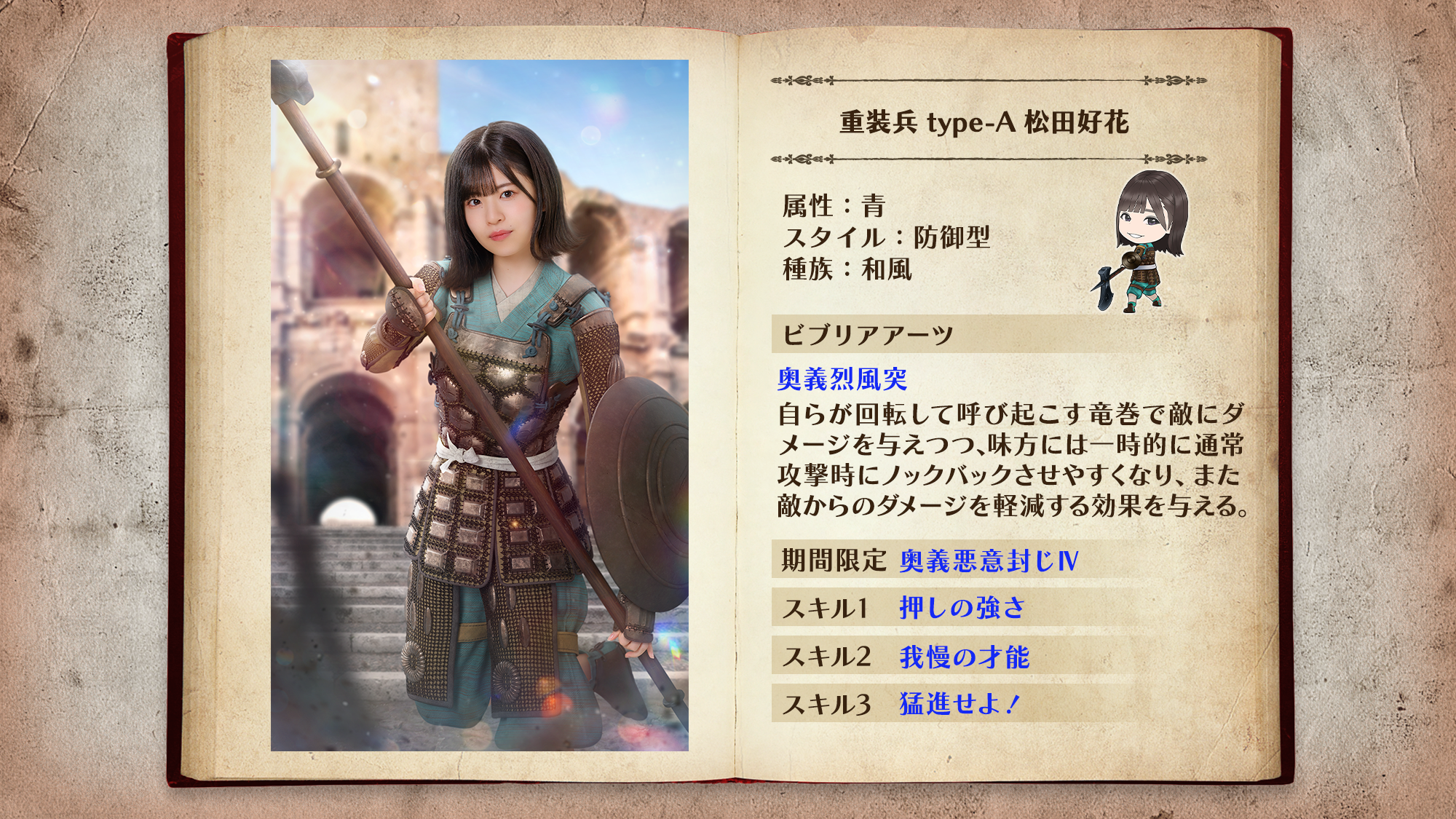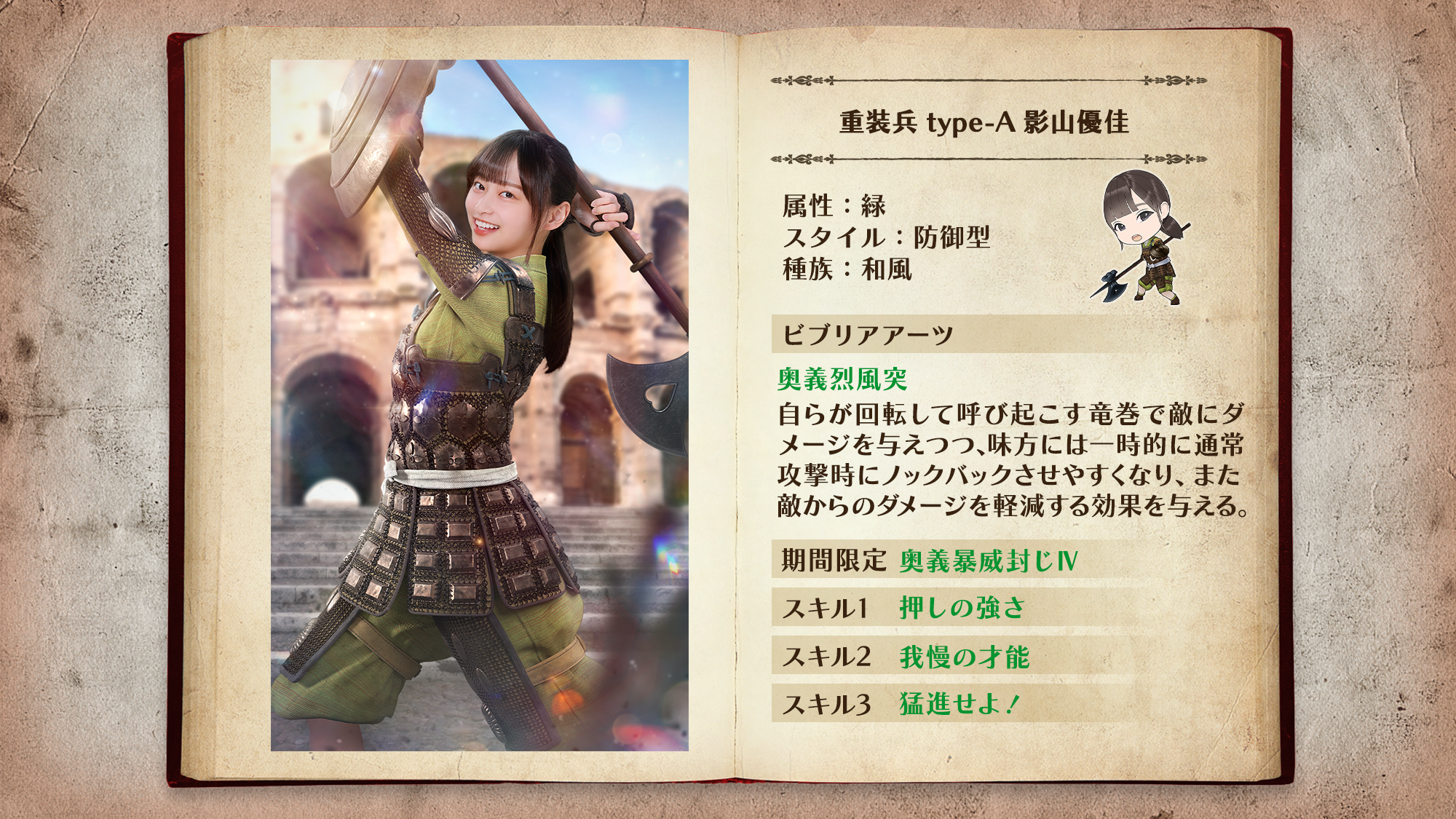 「重装兵」は最前線で敵の攻撃を防ぐ防御型ユニット。ビブリアアーツで敵をノックバックさせ、敵を近づけさせません!
