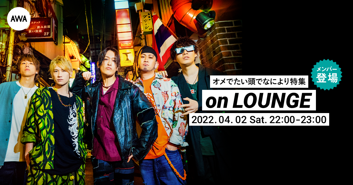 今回のイベントは、初のカバーアルバム『オメでたカバー横丁〜一番街〜』のリリースを記念して開催されるもので、アルバム収録曲はもちろん、これまでの人気曲を一挙オンエアいたします。本イベントにはメンバーがチャットに参加し、後半にはユーザーからのリクエストも受け付けます。LOUNGEは、どなたでも参加することができ、AWAアプリを事前にダウンロードしていれば、リクエストやアーティストとの交流など、よりお楽しみいただけます。ぜひ、オメでたい頭でなによりのメンバー降臨LOUNGEをお楽しみください。