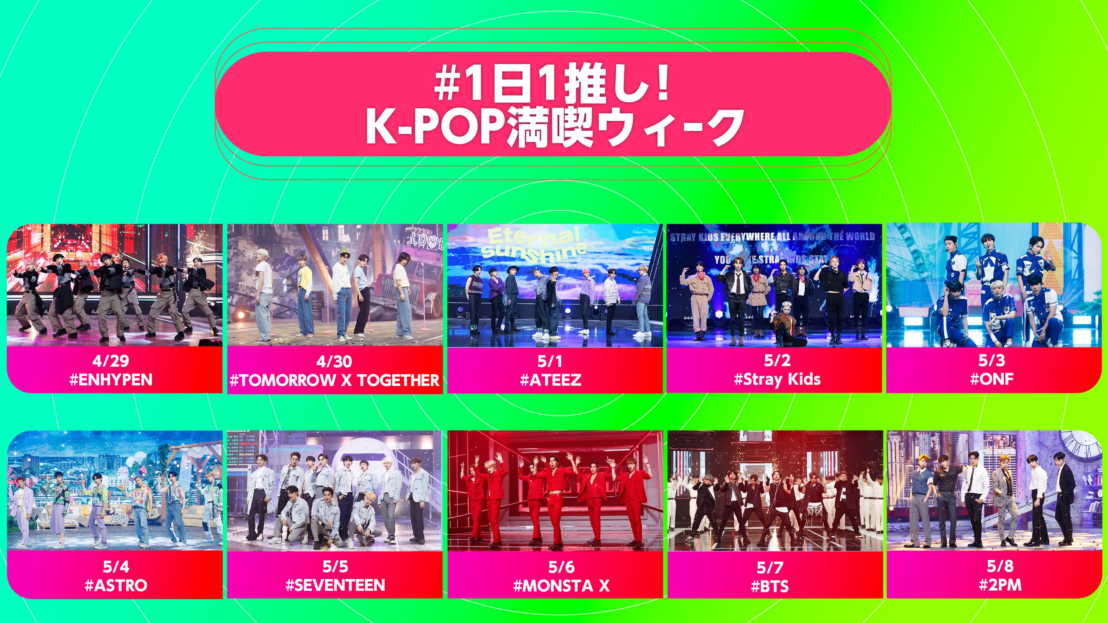 100%韓国エンターテインメントチャンネル「Mnet」および、日本初の韓国エンタメ動画配信サービス「Mnet Smart+」を運営するCJ ENM Japan株式会社(本社:東京都港区、代表取締役:崔起容〔チェ・ギヨン〕)は、GW特別編成“1日1推し!K-POP満喫ウィーク”をお届けすることを決定いたしました。