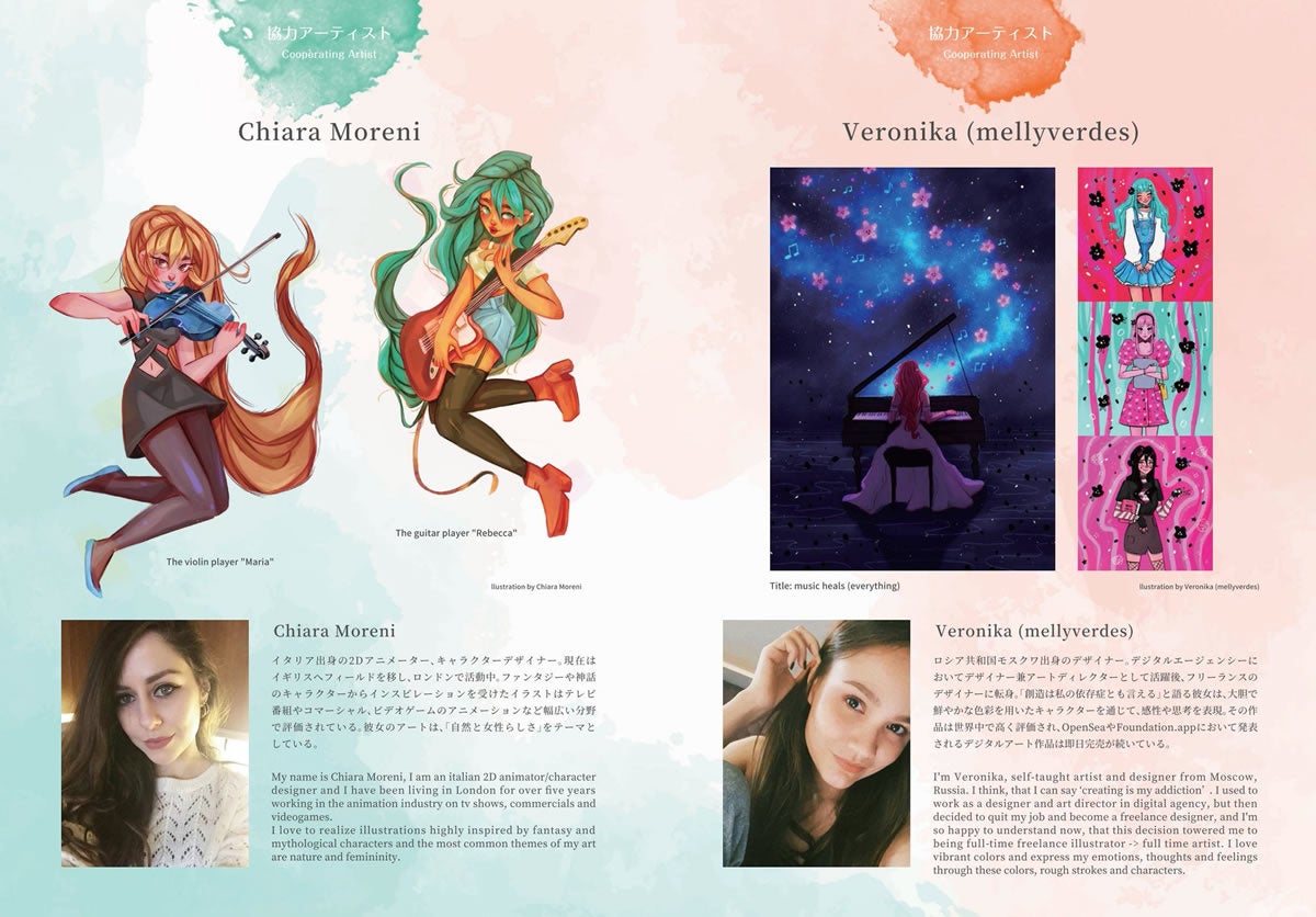 チケットNFTは、ロシアで活動するNFTアーティストVeronika (mellyverdes) 氏により無償提供されたデザインを採用し、また、公演期間中にその他のSupport NFTアーティスト、OCF2022の出演者により提供して頂く限定NFTは、DAOLaunchの、NFT Farm(DAL Drop)により取得可能となります。