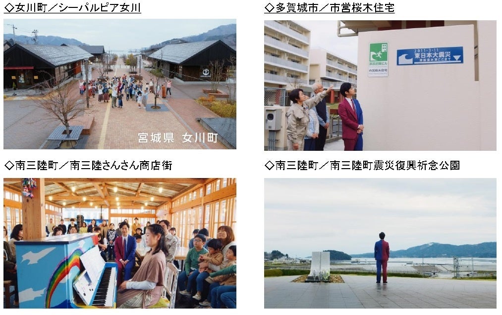 東北の撮影では、自治体の方々のご協力の下、地元の方々に出演して頂き、千葉さんと交流をしながら楽しく撮影に臨んでいる姿、震災発生当時の状況や、復興までの道のりを真摯に受けとめて撮影に臨む千葉さんの姿をカメラに収めることができました。