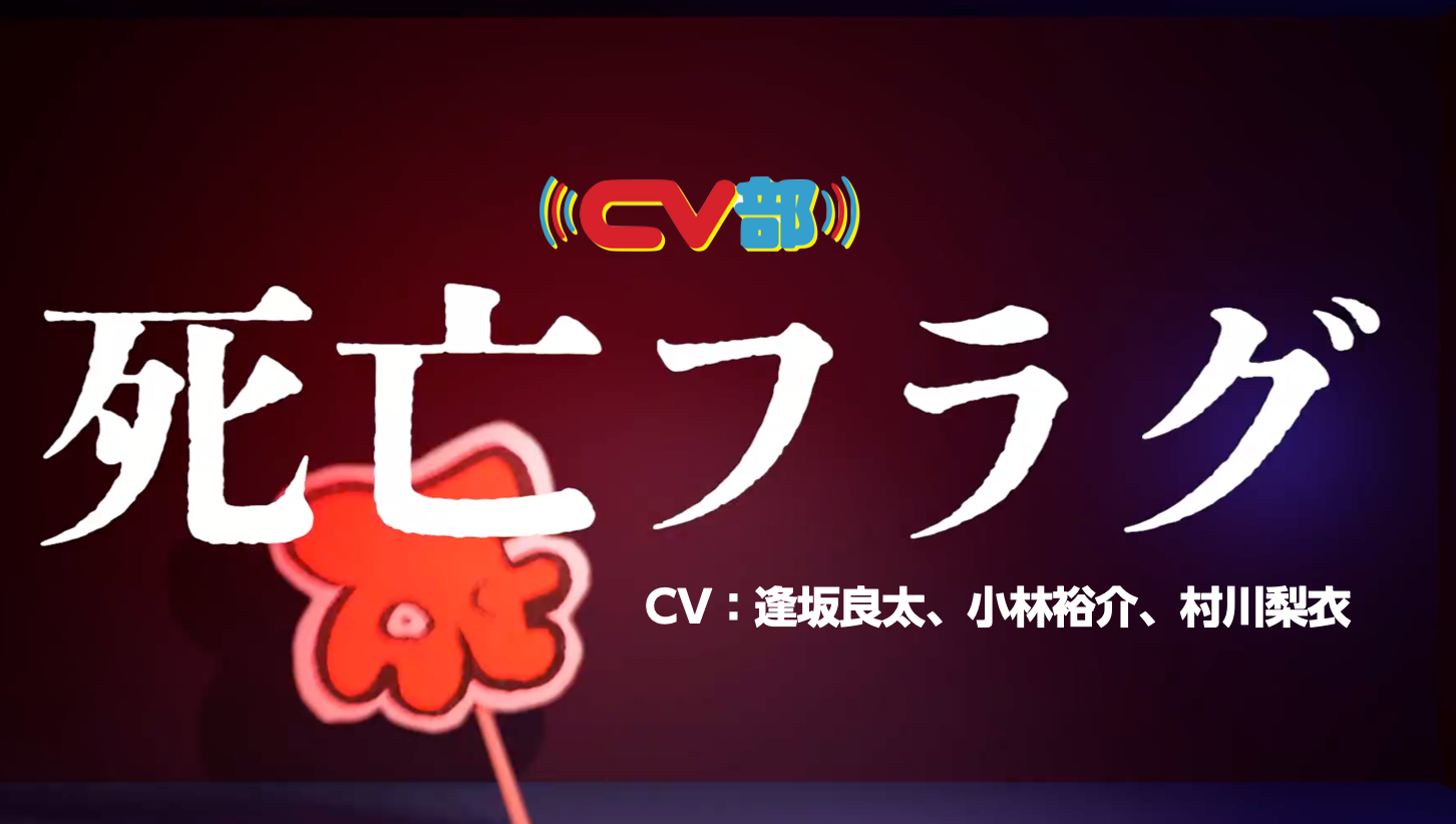 コンテンツスタジオ CHOCOLATE Inc. (本社:東京都渋谷区、代表取締役:渡辺裕介)は、本日4月1日に、身近にある「アレ」に対して、勝手に人格とキャラボイスをあてる“疑人格化”プロジェクトでチャンネル登録者数22万人を突破したYouTubeチャンネル・CV部にて、「【CV:逢坂良太、小林裕介、村川梨衣】#70 死亡フラグ」を公開したことをお知らせいたします。本作では、擬人化した死亡フラグに逢坂良太が、あるあるな死亡フラグシーンを再現する登場人物たちに小林裕介と村川梨衣がアテレコ。アニメや映画の中で誰もが一度は見たことのある“死亡フラグあるある”を擬人化された死亡フラグが紹介します。