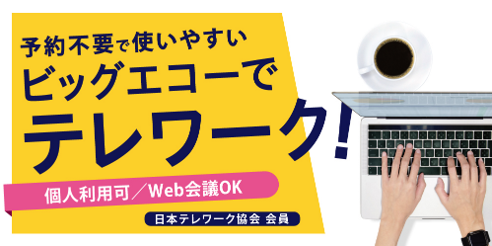 ビッグエコーでのテレワークご利用増加の流れを受け、当社は日本テレワーク協会に賛助会員として加盟し、新しい働き方や多様で柔軟な働き方の場としてもご利用いただけることを広めてまいります。