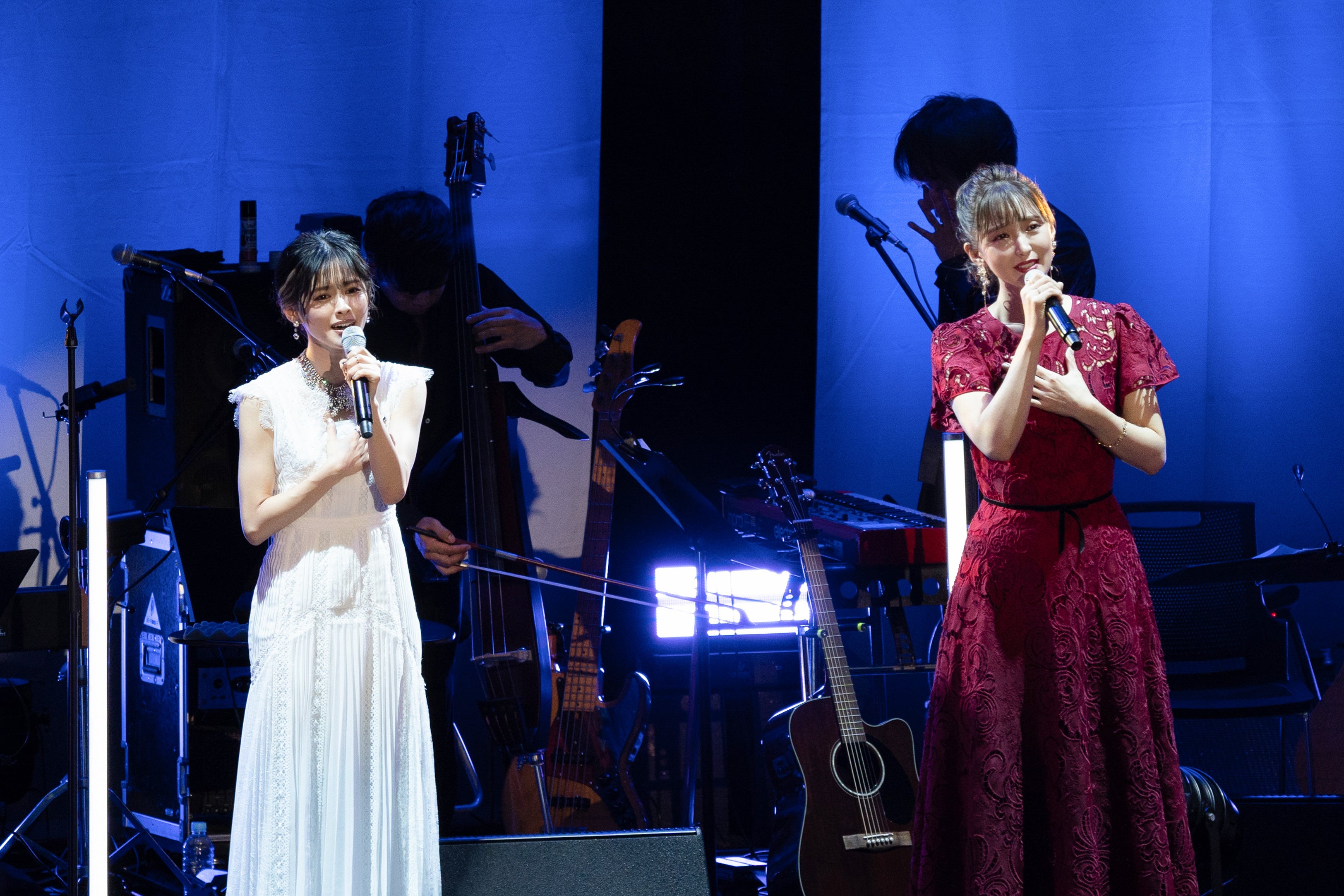 そして『マリー・アントワネット』から、ふたりのデュエット曲となる「憎しみの瞳」を披露すると、和気あいあいとしたトークからは一変。緊張感をはらんだ雰囲気が会場を包み込んだ。笹本も「二人とも声が似ているから、歌っているとひとつになれる感じがある。だから昆ちゃんと歌うのはうれしい」と満足げな様子を見せつつも、共演するときは敵対する役柄が多かったことから「今度は仲良しの役がやりたいね」と誓い合う二人だった。