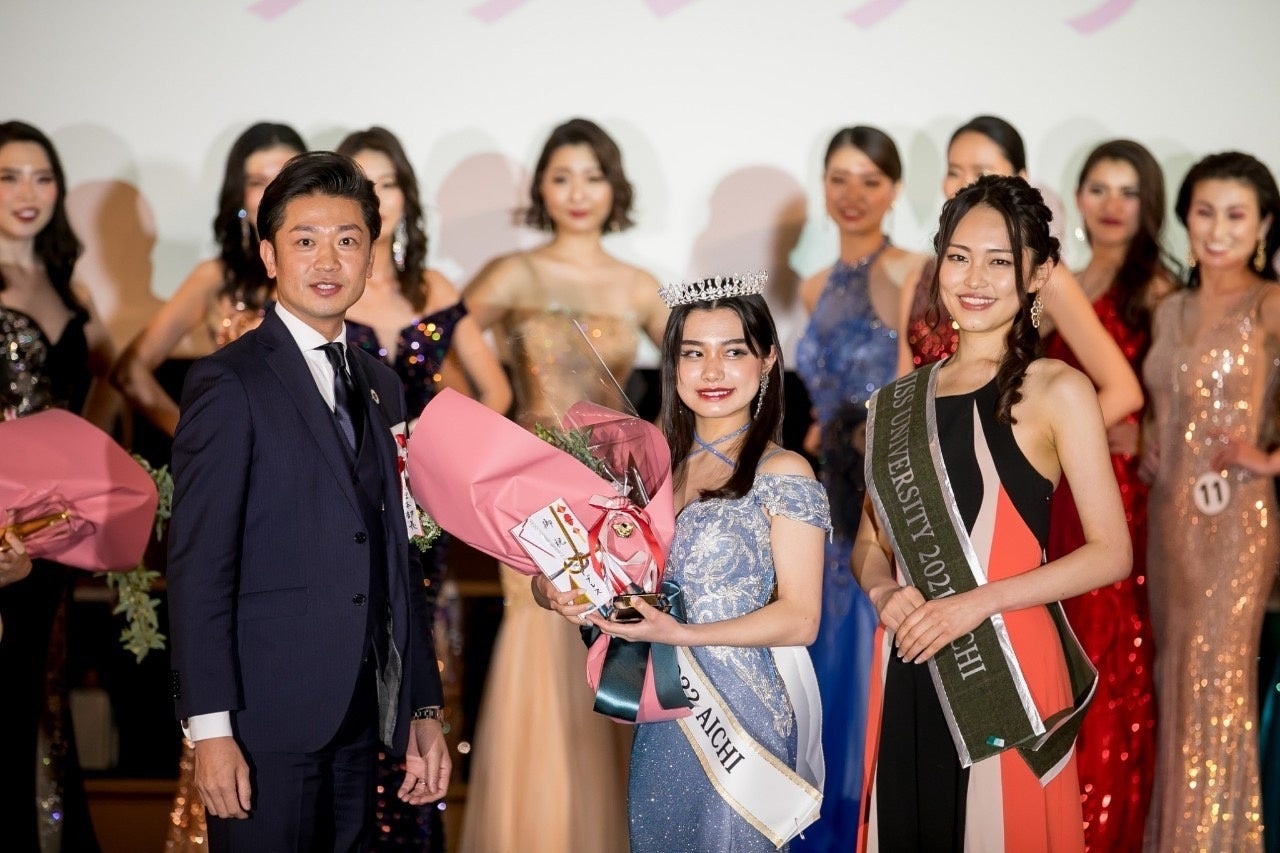 まず皆さんありがとうございました。絶対にグランプリを取る。そう宣言して私はこのミスコンテストに参加しました。その結果ミスユニバーシティグランプリ、さらには特別審査員賞も頂き2つも賞を頂けたことをとても嬉しく思います。せっかく頂いた愛知県代表の座を私はちゃんと日本1位に繋げてみせます。本当に嬉しいです。ありがとうございました!
