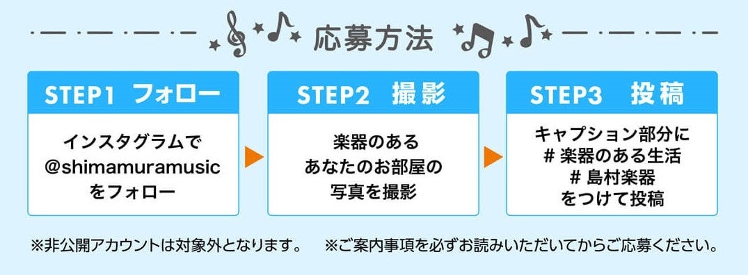 島村楽器キャンペーン指定のハッシュタグ内でフォトコンテストを行います。