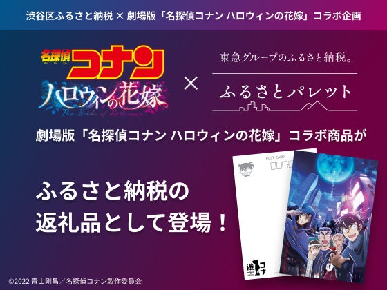 映画公開を記念して、4月15日(金)より、『渋谷区×劇場版「名探偵コナン ハロウィンの花嫁」オリジナルグッズ』が、渋谷区のふるさと納税返礼品として、東急グループのふるさと納税「ふるさとパレット」サイトにて数量限定での寄付申込の受付を開始します。