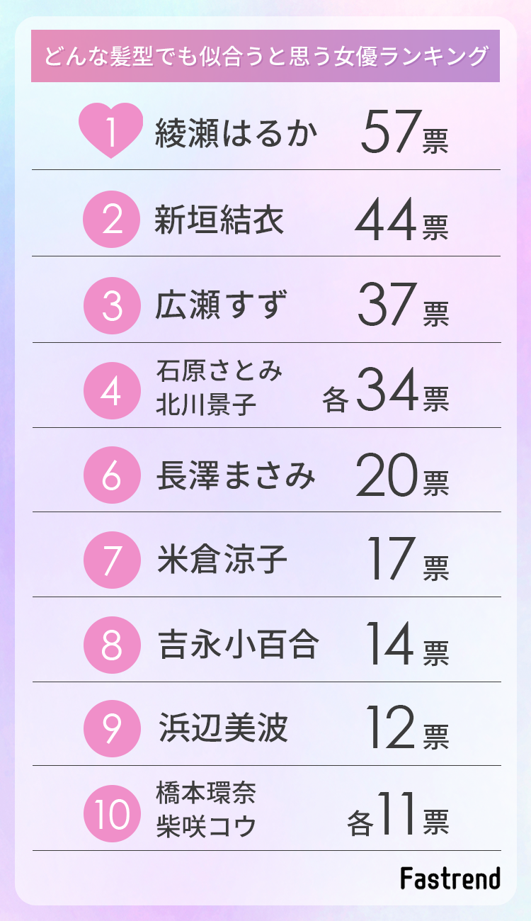 | どんな髪型でも似合うと思う女優ランキングTOP10 |