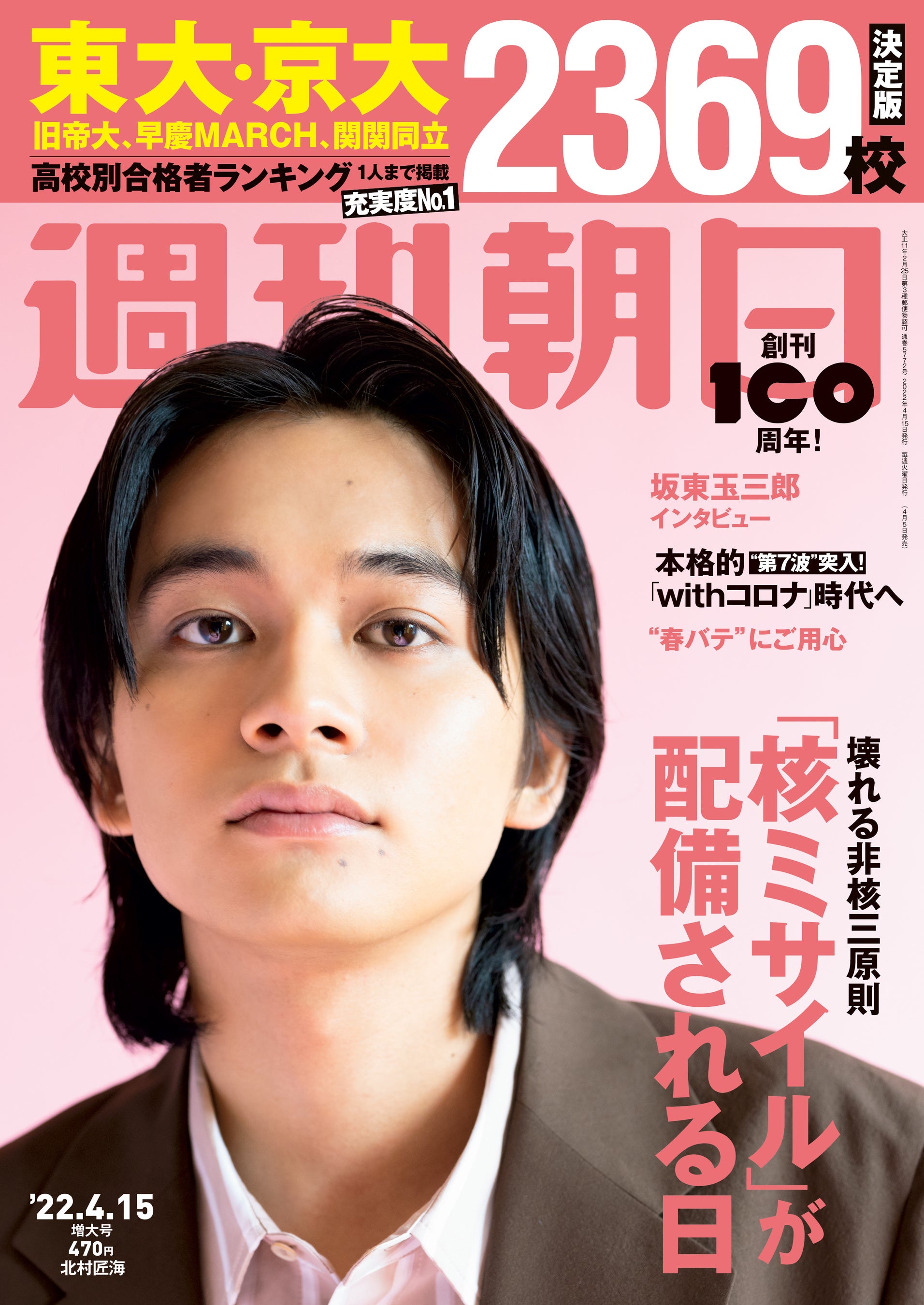 ウクライナ侵攻をめぐり核の使用をちらつかせるロシアのプーチン大統領の言動により、「核戦争」の脅威が一気に現実味を帯びてきています。そんな中、日本で突如持ち上がった「核シェアリング(核共有)」論。非核三原則を否定する考え方ですが、世論調査では「議論すべき」という声が多数集まりました。果たして、日本の防衛にとって有効な手段と言えるのか。NATOの事例などを元に、中身をじっくり検討してみました。他にも、恒例の大学合格高校ランキングは難関国公私大について全国2369校の結果を掲載。「第7波」の兆しを見せる新型コロナウイルスへの備え方、志村けんさんの三回忌に「ゆかりの地」東村山や麻布十番などに絶えないファンの足、不況で苦戦を強いられるドキュメンタリー映画の世界で、ヒットを連発する配給会社「東風」の内幕など、充実のラインナップでお届けいたします。表紙&カラーグラビアには、俳優・歌手などマルチな活躍で注目を集める北村匠海さんが登場です。