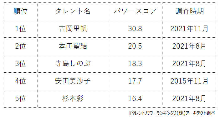 タレントパワーランキングを詳しく知りたい方はこちら↓