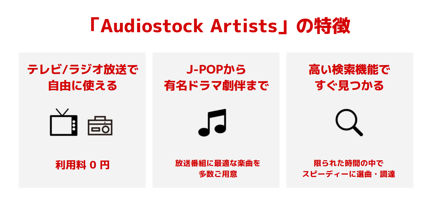「Audiostock Artists」では今後も、全国の音楽出版社が保有する高品質な作品をラインアップに追加していくことで、テレビ / ラジオ放送におけるオンライン完結型の選曲業務の実現を目指し、番組制作を担当する方々をサポートしてまいります。