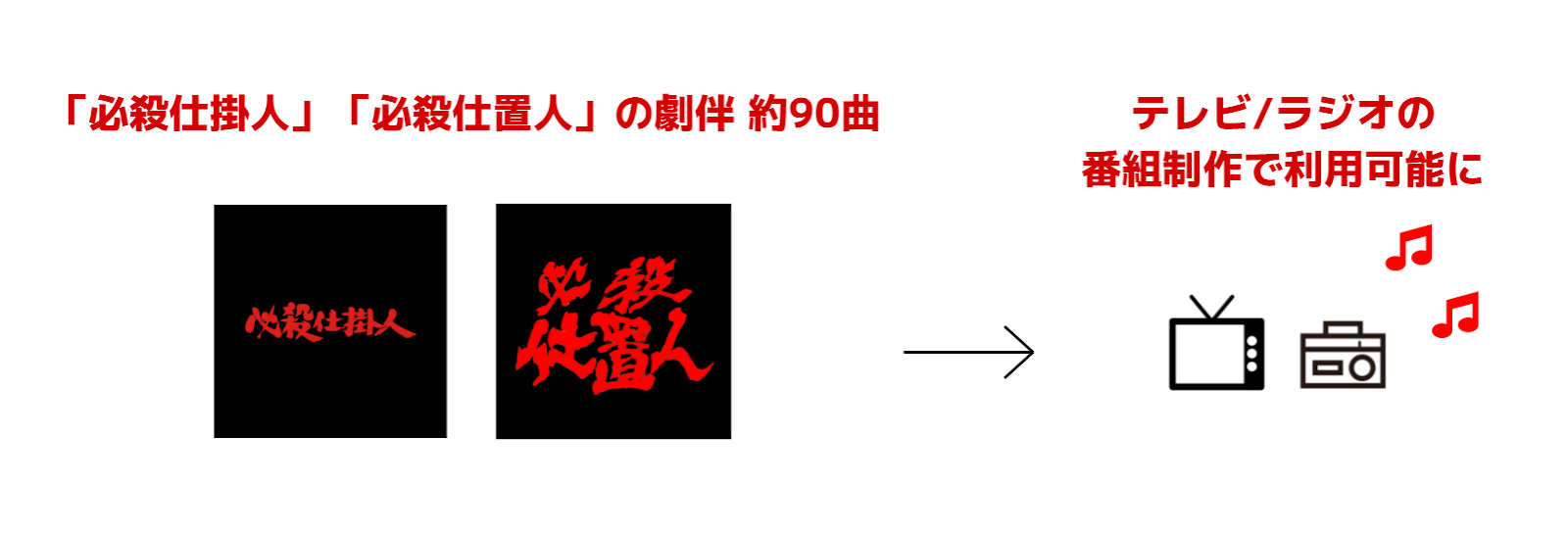 「必殺」シリーズの劇中で流れる印象的な楽曲は、これまでに幅広い世代の視聴者を魅了してきました。この度の提供開始により、テレビ / ラジオ放送の番組制作において「必殺」シリーズの劇伴を無料でご利用いただくことが可能となります。