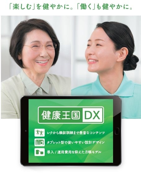 株式会社エクシング(本社:名古屋市瑞穂区、代表取締役社長:水谷 靖)は、シリーズ初のタブレット型を採用し、導入時の初期費用や運用費用を抑えたサブスクモデルでありながら、レクリエーションから機能訓練まで約900種類(※)もの豊富なコンテンツを搭載、個別機能訓練加算のサポートまで実施することで、高齢者施設の運営を支える新サービス「健康王国DX」を、本日4月5日(火)に発表しました。高齢者施設をはじめとしたヘルスケア市場をターゲットに、4月14日(木)より販売を開始します。 (※)2022年3月現在