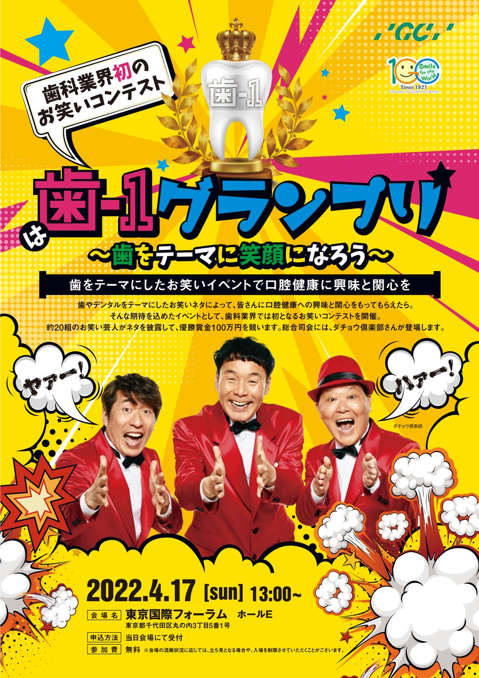 株式会社ジーシー(本社:東京都文京区 代表取締役:中尾潔貴)は,一般の方々が口腔健康について興味を深めるきっかけになることを期待して,歯科業界初のお笑いコンテスト「歯-1グランプリ(はーわんぐらんぷり)」を2022年 4月17日に開催いたします。