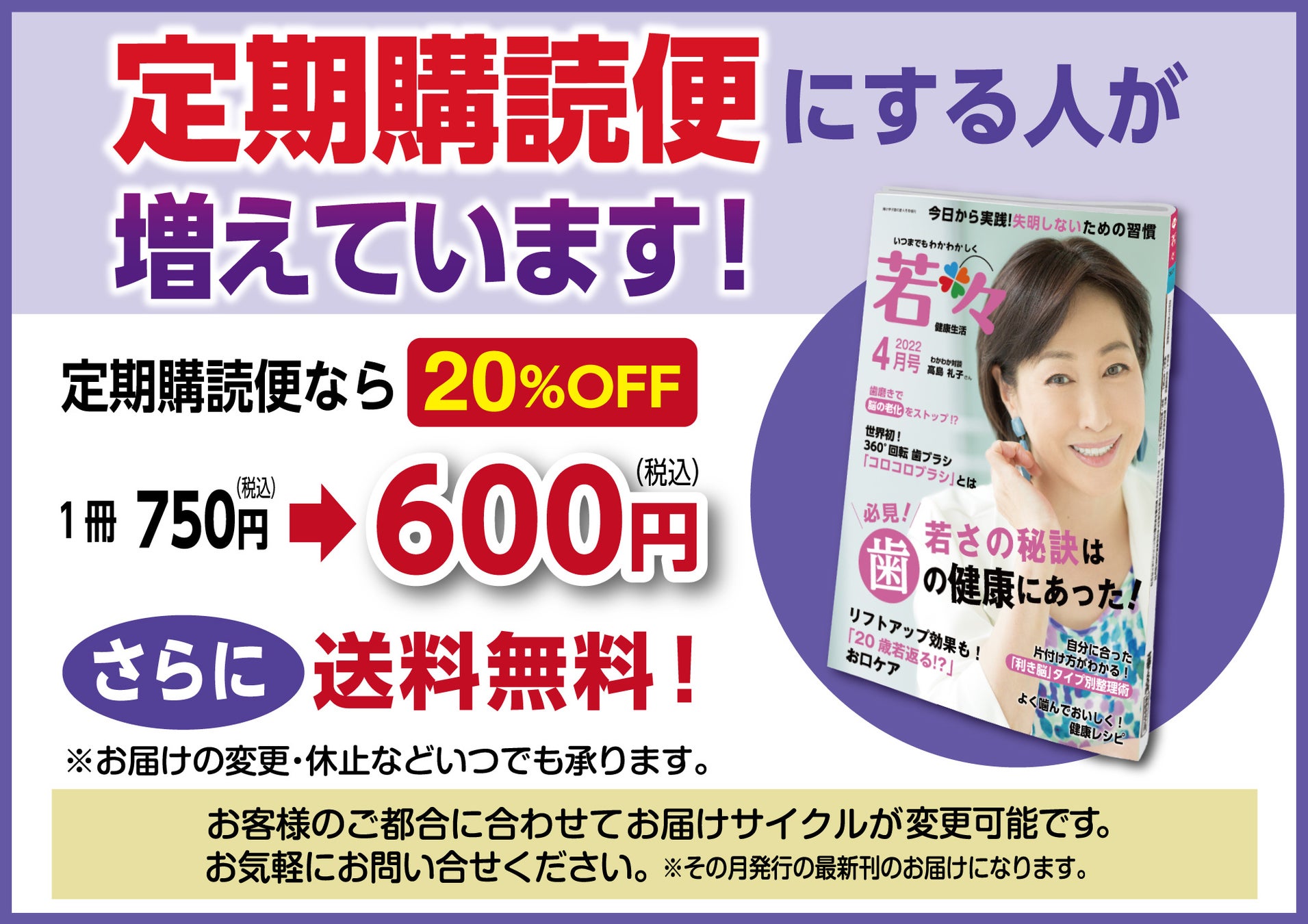 また、1冊750円(税込)が600円(税込)で毎月お届けします。