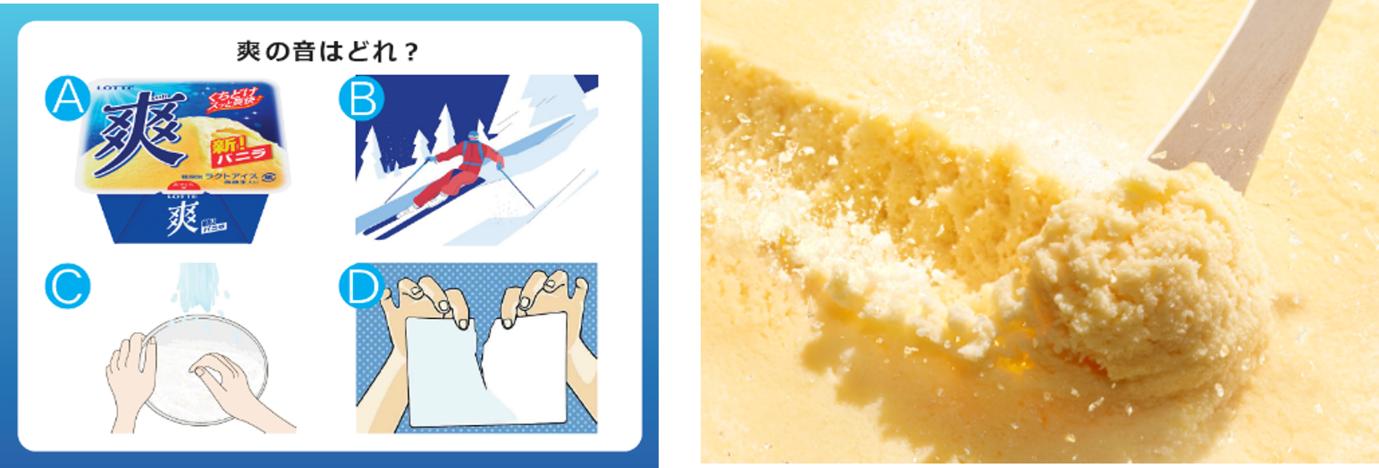 新しく「爽」の新TV-CMキャラクターになった森さんに「超難関!?爽クイズ!」に挑戦していただきました。全4種類の音の中から「どれが本物の爽の音(微細氷のシャリシャリ音)か」をヘッドホンで聴き比べてもらいました。