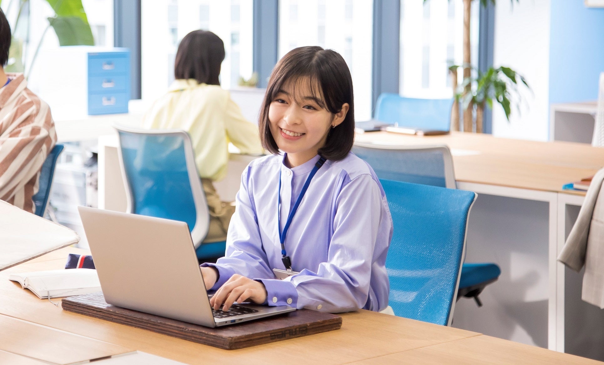 オフィスでの仕事中、「あっ!」と何かに気づく森さん。