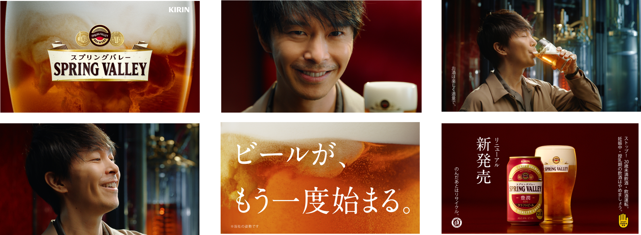 キリンビール株式会社(社⻑ 堀口英樹)は、今後のビール市場の魅力化を担うブランド「スプリングバレー 豊潤<496>」で、さらなるおいしさを追求し、新たなビールのおいしさをお届けすべくリニューアルします。またそれにともない、新「スプリングバレー」感動体験プロジェクトをスタートすると共に、ブランドアンバサダーを務める俳優・⻑⾕川博⼰さんが出演する新TVCM 「スプリングバレー ローンチ篇 長谷川さん」を2022年4⽉11⽇(月)より全国で放映開始します。