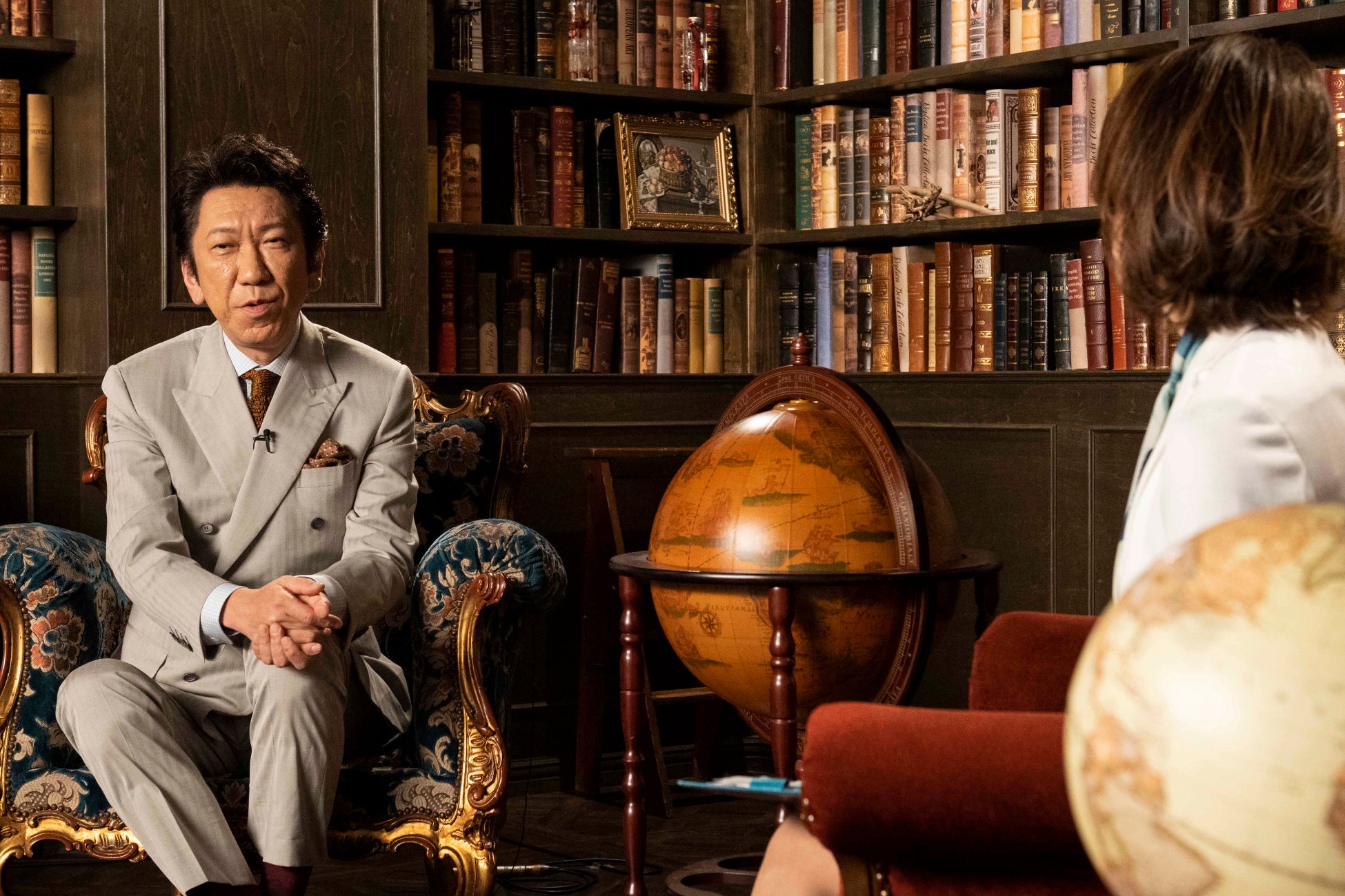 インタビューでライブ当時を振り返る布袋寅泰。インタビュアーは長野智子。
