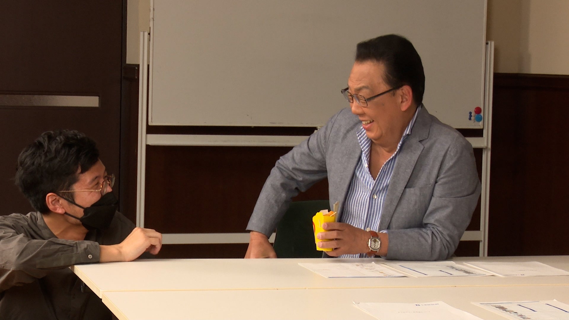 長丁場の撮影にも関わらず、本番の合間でジョークを交えた話をスタッフや他の出演者に振ってくださる梅沢さん。動画でのご立腹モードとはまた別の柔らかい雰囲気で、終始笑いの絶えない和やかな現場となりました。梅沢さんは撮影を振り返り「始めから終わりまで笑いの渦だったですね。」「とっても楽しい“笑い”の撮影。スタッフも途中NG出るくらい笑ってて。」と、ご自身も撮影を楽しんでいただけたようでした。