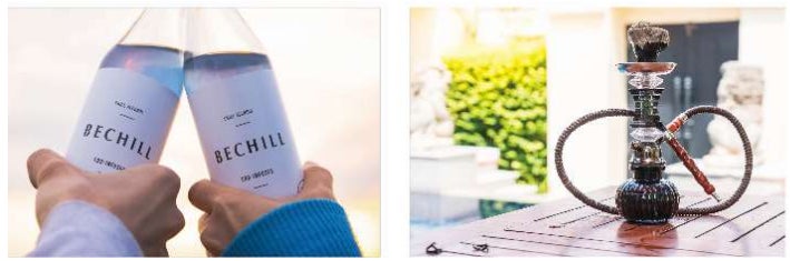 クラウドファンディングサイト「Makuake」にてCBD商品史上最高金額を達成したCBD配合スパークリングリキュール「BECHILL(ビーチル)」と「GLAMSA」とのスペシャルコラボゾーンです。海外セレブたちの間で人気に火が付き、日本でも話題になっているシーシャ(水タバコ)を楽しみながら、“飲むサウナ”で自由にととのいませんか
