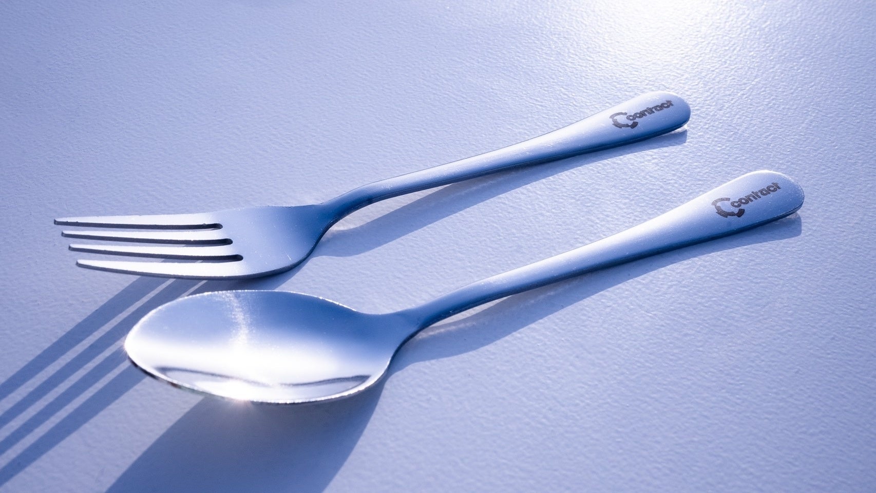 **6周年記念品としてContactロゴ入りカトラリーを制作しました。4/22(金)はフォーク、4/23(土)はスプーンを、先着300名様にそれぞれプレゼントいたします。**