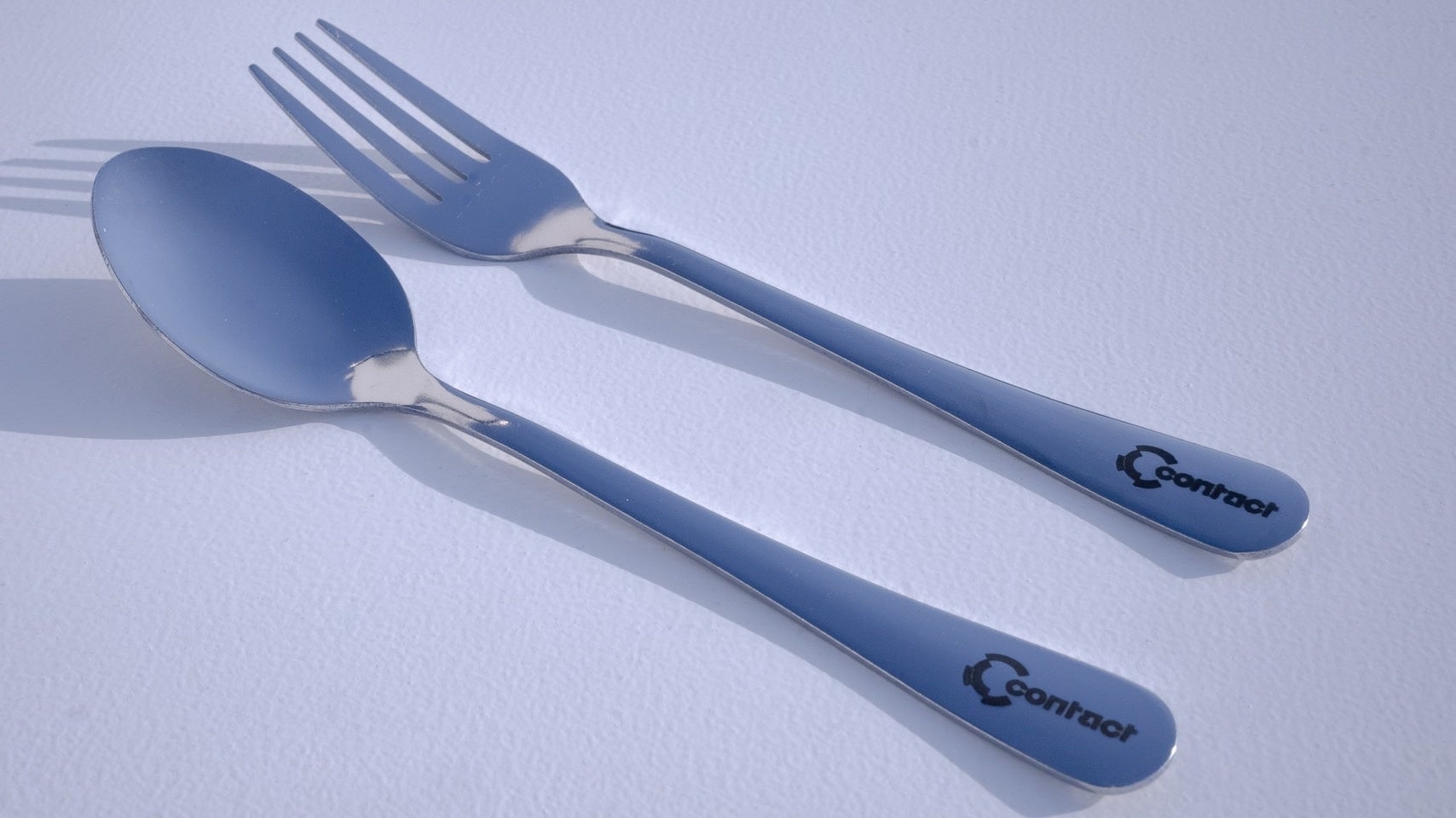 **6周年記念品としてContactロゴ入りカトラリーを制作しました。4/22(金)はフォーク、4/23(土)はスプーンを、先着300名様にそれぞれプレゼントいたします。**
