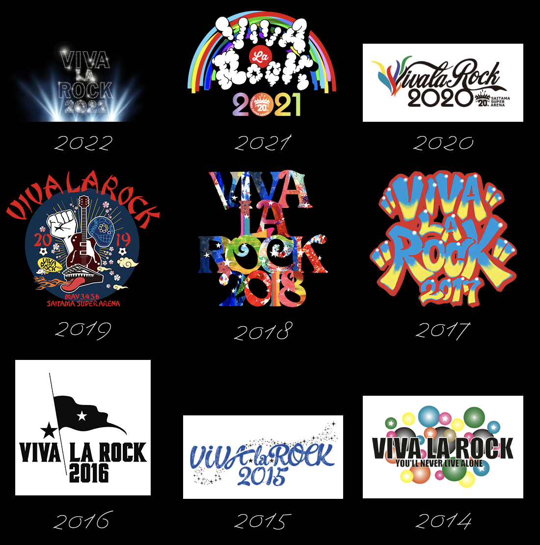 VIVA LA ROCKのロゴは初代の2014年〜2022年の最新のものまで取り揃えています。