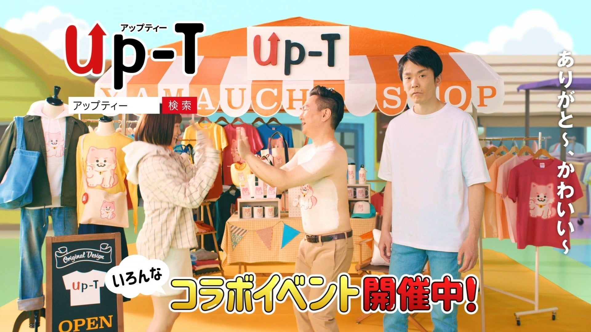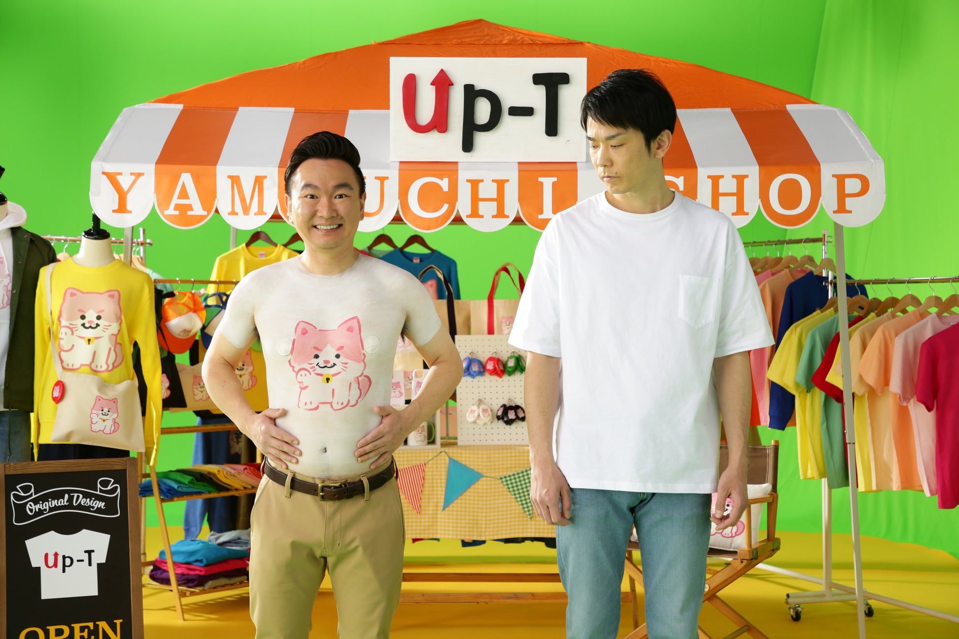 オリジナルグッズの作成・販売サービスの「Up-T(アップティー)」を展開する丸井織物株式会社(本社:石川県鹿島郡、代表取締役社長:宮本好雄)は、この度、2021年からCMキャラクターを務めている、お笑いコンビかまいたちの山内健司(やまうち・けんじ)さんと濱家隆一(はまいえ・りゅういち)さんを起用した新TVCM「歌モノ編」・「ボディペイント編」を4月15日(金)より順次オンエアいたします。そして今回、初のTVCM撮影となった弊社所属の一ノ瀬陽鞠(いちのせ・ひまり)も女性客役で、「ボディペイント篇」に出演しています。