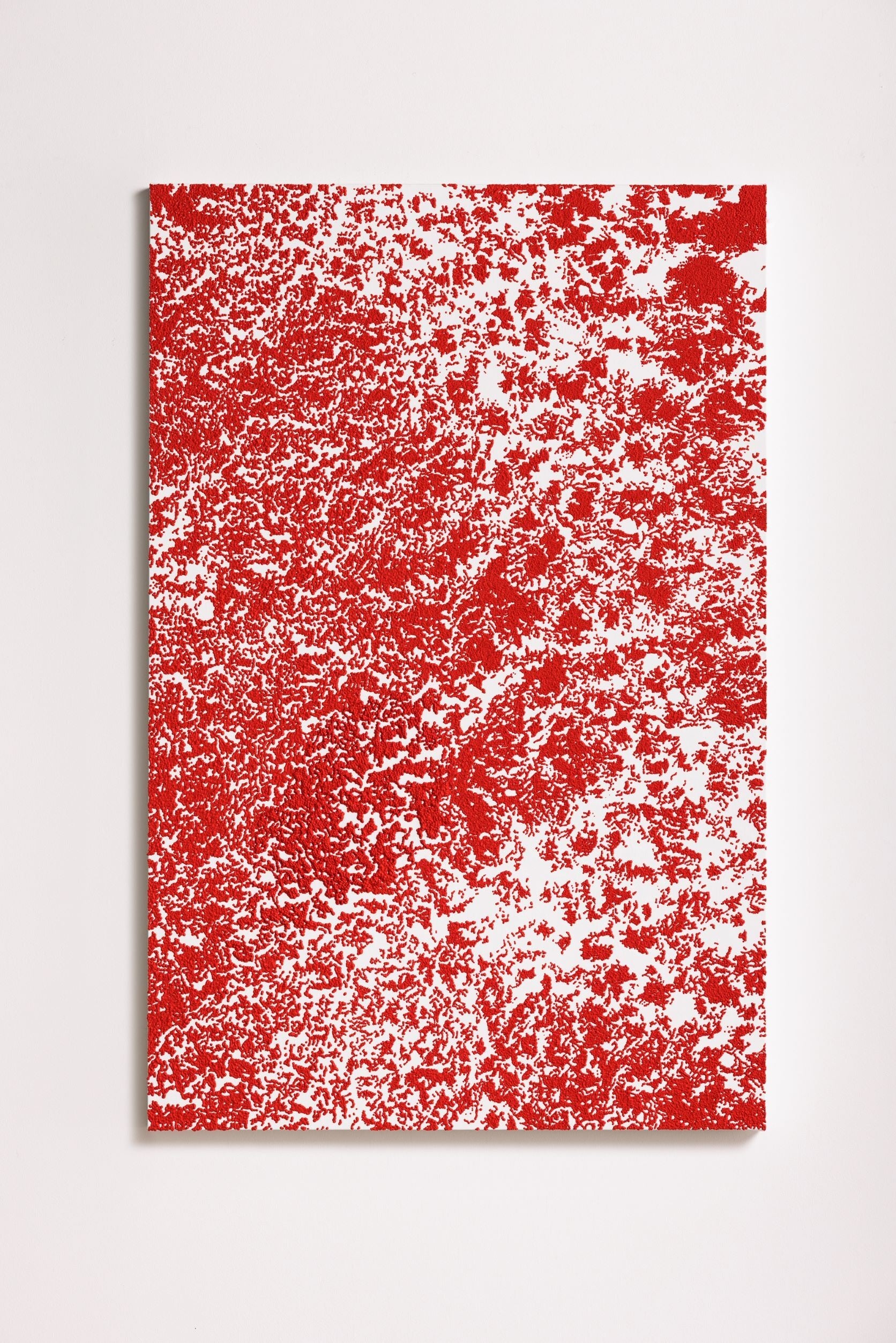 谷敷謙は、木目込みという日本固有のテキスタイルの技術をペインティングの手法として捉え直し、新しい絵画表現の実践をしています。江戸時代にルーツを持ち、寺社建築の端材を人形に用いることで生まれた木目込みを、谷敷は自身の経験をベースにしながら再解釈し、使用する素材を古着や廃材に絞り、元々の持ち主に由来する身体性、時間、生の感覚といった有機的な要素を汲み取りながら、祈りや願いを込めるという木目込みや伝統工芸に特有の文化や価値を、絵画を通して現代へとリプレイスしています。