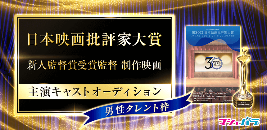 本オーディションでは、日本映画批評家大賞で新人賞を受賞した監督が制作する映画の男性主演キャストを選出します。