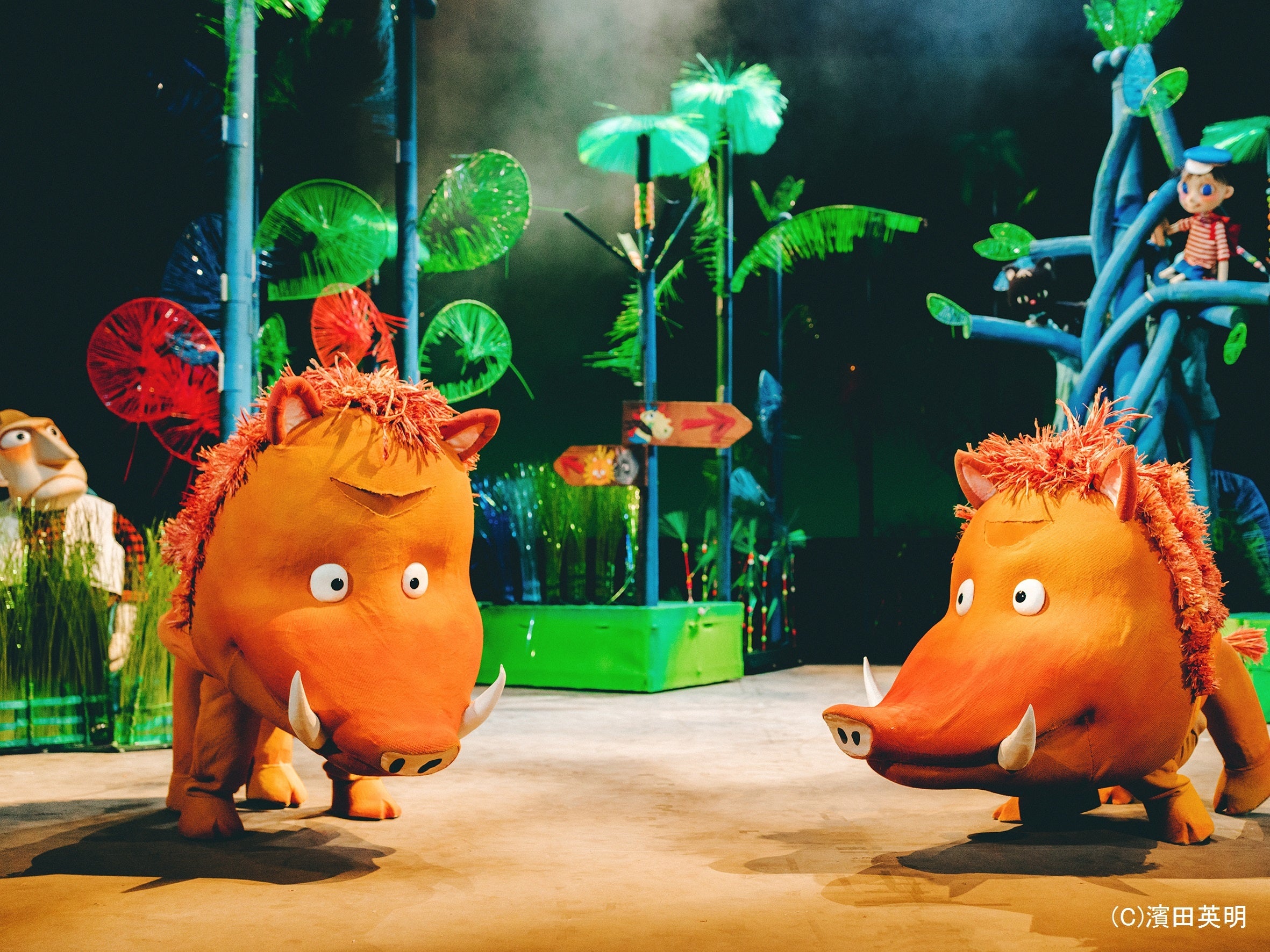 原作者・ガネットさんに会いにニューヨークまで訪れて創った本作は、華やかな舞台転換や、次から次へと登場する動物たち、人形はもちろん照明、音楽、振付、小道具の細部まで丁寧に創られた総合舞台芸術作品として評価されています。ガネットさん本人も来日、観劇して楽しまれました。