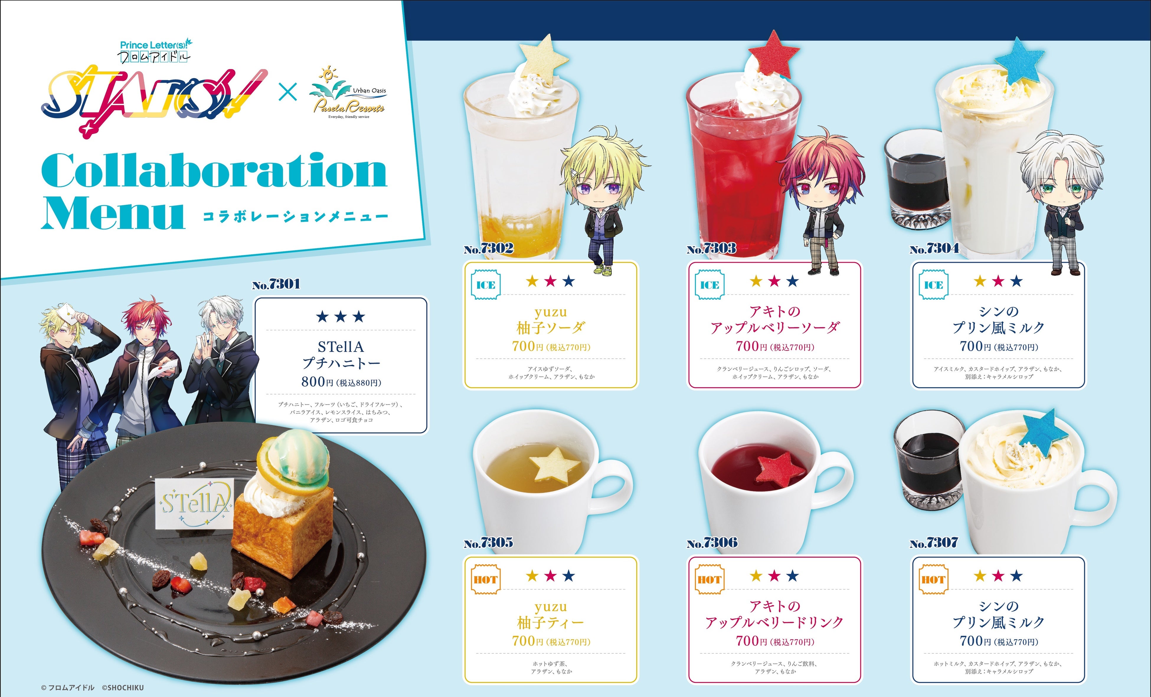 癒しと寛ぎをテーマにモダンアジアンリゾートのインテリアで都会のオアシスを演出し、オリジナルカラオケシステムにより“曲数世界一”を実現するカラオケパセラ。この度4月24日のイベントに合わせてコラボレーションメニューの展開が決定いたしました。アキト、yuzu、シンをイメージしたドリンクや、STellAをイメージしたプチハニトーなど、『Prince Letter(s)! フロムアイドル』を感じられるラインナップになっております。4月24日の会場である有楽町オルタナティブシアターの近くにあるカラオケパセラ銀座店でもコラボレーションメニューを提供しておりますので、ぜひイベントの前後にお立ち寄りください。また、今回のストーリーライブのメインキャラクター・冥王院シンを演じる土岐隼一が実際にコラボレーションメニューを試食したスペシャル動画も近日公開になりますのでお楽しみに。